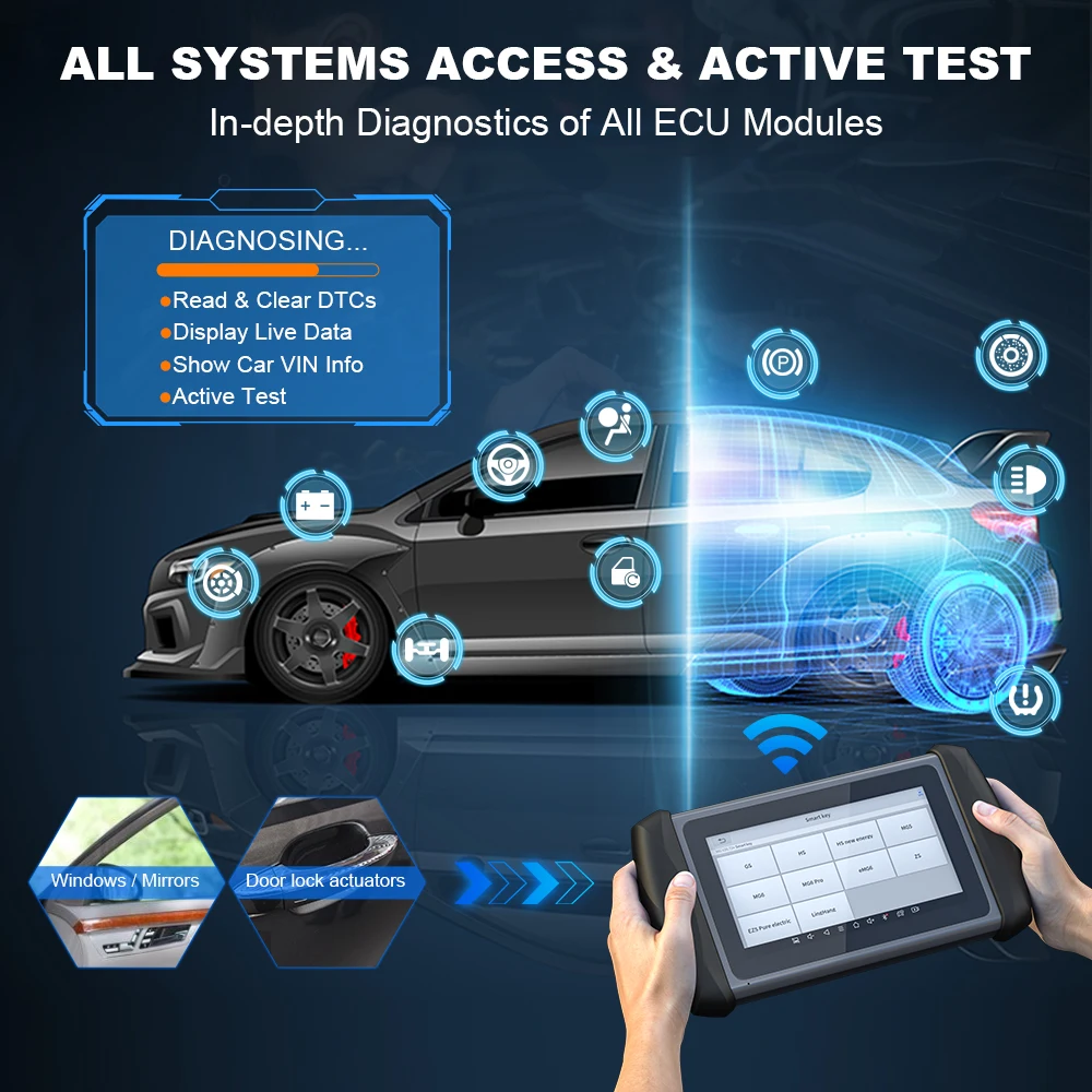 Двунаправленный сканирующий прибор IK618 поставляется с OE level всеми возможностями диагностики систем, которые вы ранее могли найти только в дилерском инструменте. Он может сканировать все доступные системы для выполнения диагностики, включая: