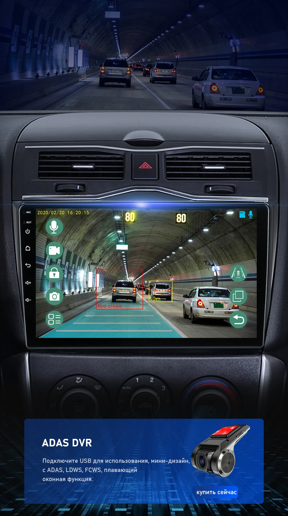 Supports connection to ADAS DVR. ADAS DVR has multiple built-in assistive driving technologies, inserting high-quality TF memory card to record every moment of your driving.