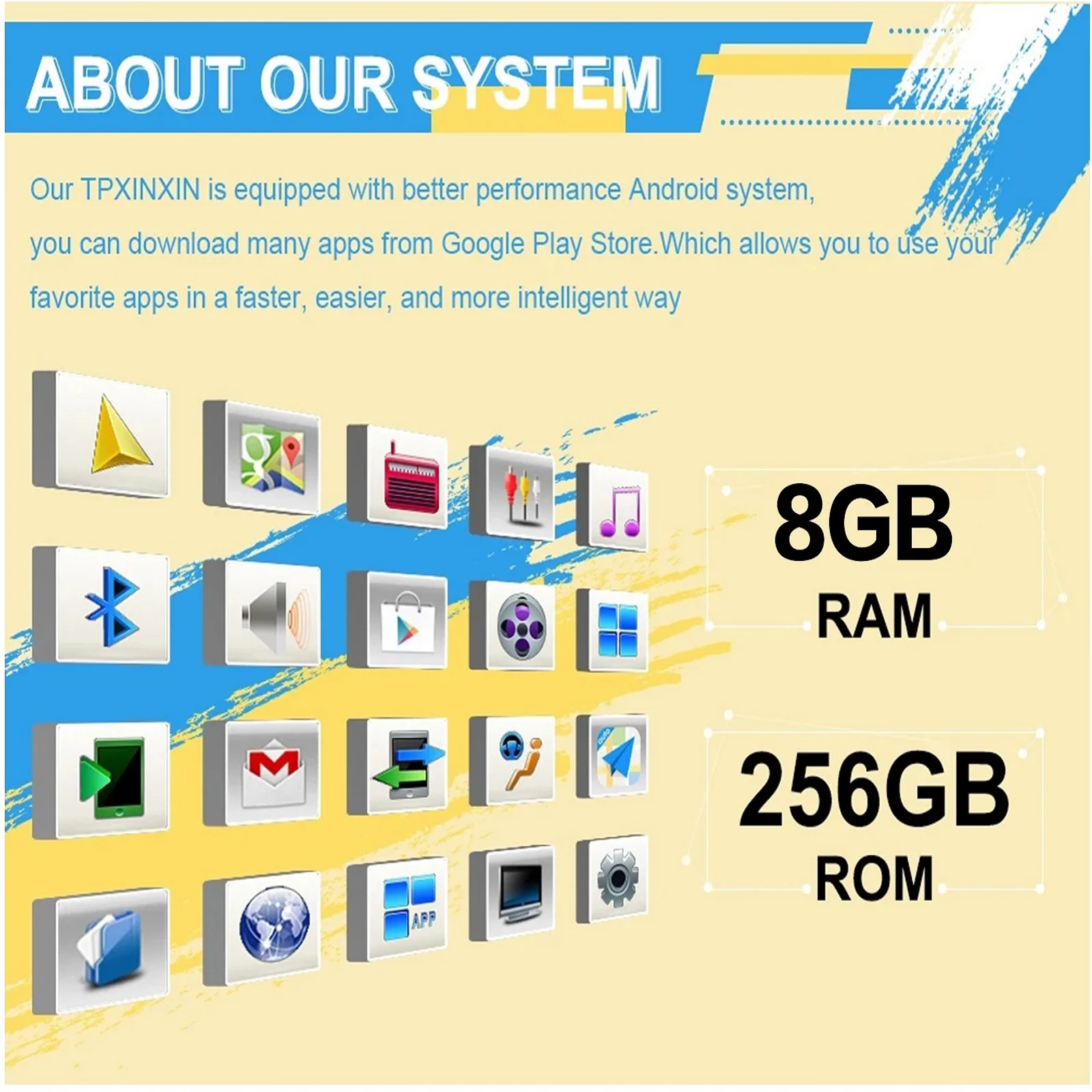.ОЗУ Android 13, 8 ГБ, 256 ГБ ПЗУ, 8 ядер, Qualcomm, встроенный DSP, Carplay