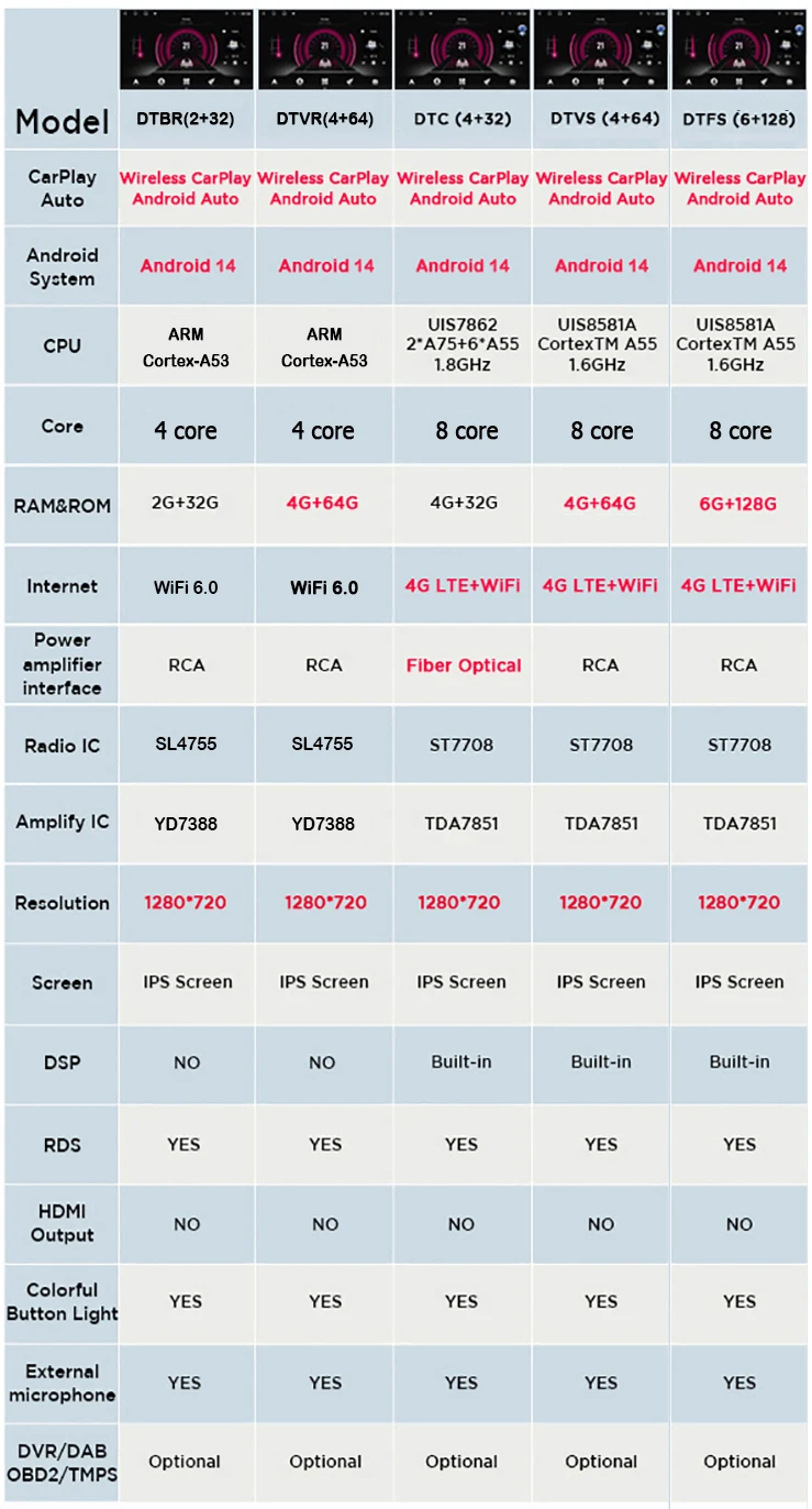 Новые версии DTBR, DTVR:Оснащен 4-ядерной конфигурацией, без DSP и функцией SIM 4G.Несмотря на различия в процессорах и программных решениях, он фокусируется на улучшении распространенных функций, таких как WIFI, Bluetooth и скорость загрузки, обеспечивая удобство работы.