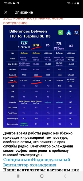 Шикарный аппарат за такую цену. Есть с чем сравнить: имел 8227L (2\32), uis8581a (2\32). 2 гигов для мультизадачности сегодня уже мало, 4 - за глаза. Проц - зверь, скорость работы на уровне редми9. Экран яркий, без засветов, ночью не слепит. Звук классный, явно превосходит возможности штатной акустики, аудиочип 7851L как в описании. Думал обойтись без кулера, но нет, с включенной печкой зашкаливает за 90 градусов. Приколхозил подходящий по размеру. Аппарат качественный, прошивка адекватная. На распродаже купил ровно вдвое дешевле тиайса 4\64, чему несказанно рад. Отсутствует адаптер для штатной камеры, продавец обещает выслать бесплатно. Посмотрим.