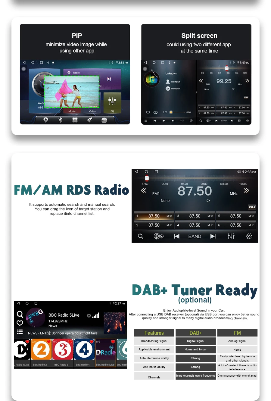 - Carplay + Android Auto:Built-in