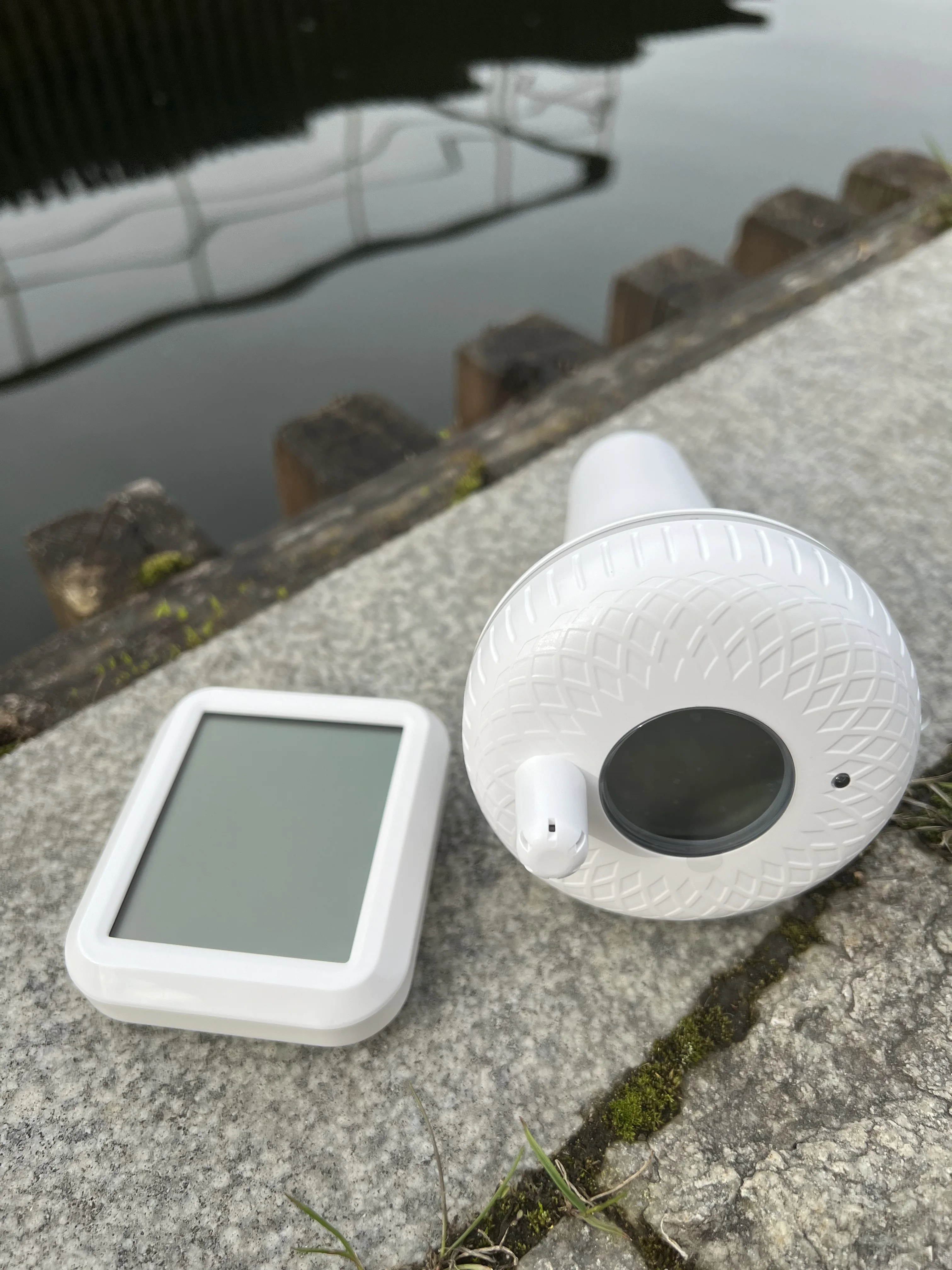Полезный беспроводной термометр для бассейнов, аквариумов, прудов и т.п. Устройство состоит из базовой станции, на экране которой показываются данные о текущей температуре и влажности воздуха а также температуре воды с беспроводного датчика. Беспроводной датчик измерения температуры воды сделан в форме поплавка, который плавает на поверхности и измеряет в режиме реального времени измеряет температуру воды. На экране показывается текущая температура и минимальные и максимальные значения за всё время. Питается и базовая станция, и датчик от двух батарей типа AAA. Устройство полностью соответствует описанию продавца. При заказе можно выбрать также вариант с передачей показаний через Bluetooth в приложение на телефоне. Доставка заняла всего 3 дня!