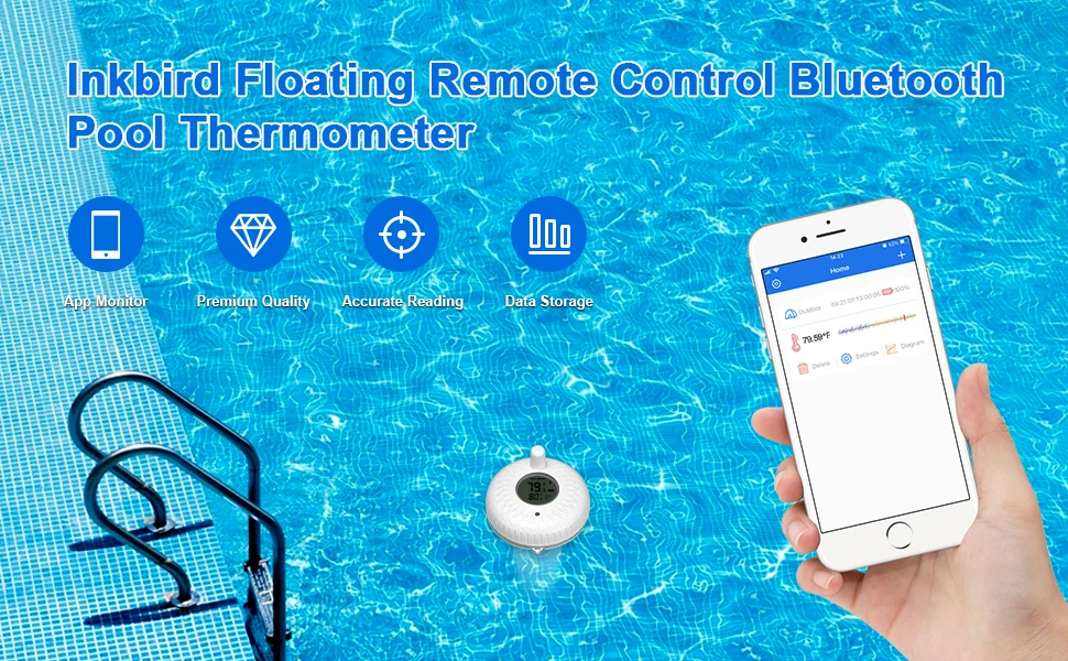 INKBIRD IBS-P01R Беспроводной термометр для бассейна IPX7 Водонепроницаемый плавающий термометр для бассейна, детских ванн, аквариумов, пруда для рыбы