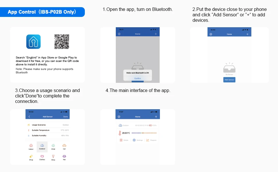 2. Значения мониторинга через приложение для телефона в диапазоне Bluetooth 30 м/98 футов.