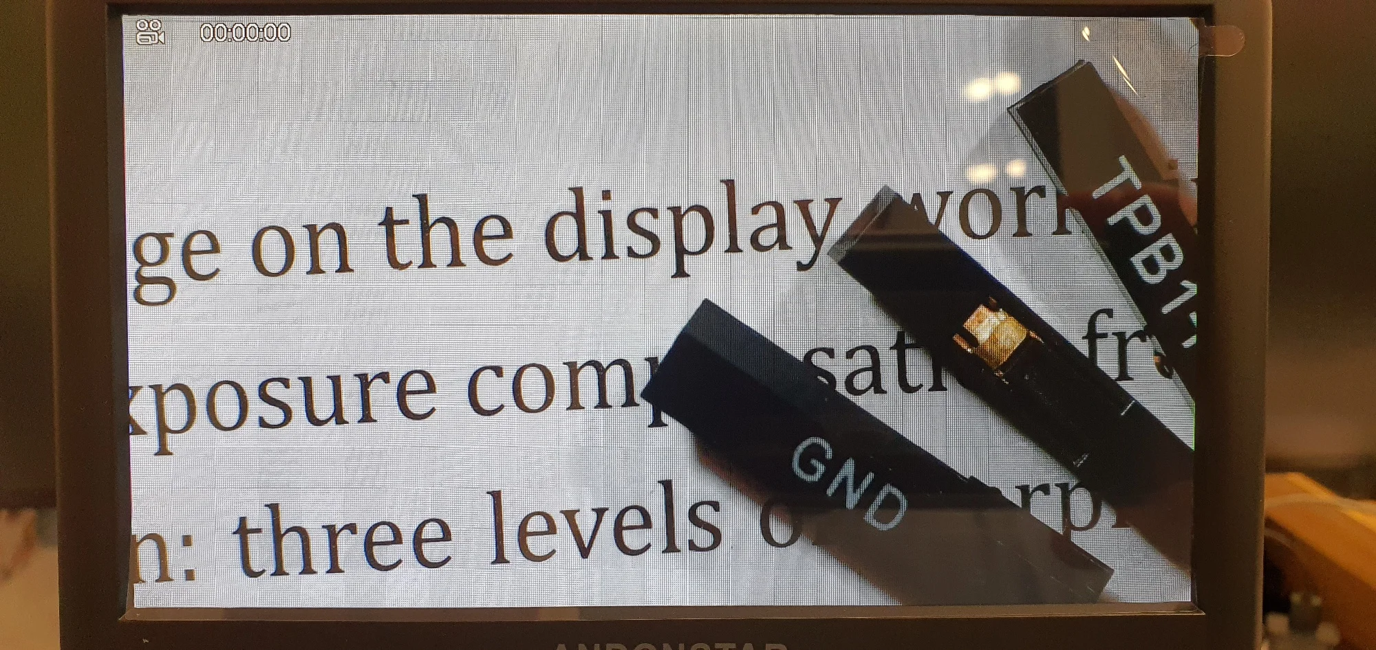 Отличное качество. Семь уровней подсветки (фото делались в тёмной комнате на минимальном уровне посветки на смартфон). Боковая подсветка великолепна - нет бликов. Собственный цифровой зум х3.0 (при этом пиксели на родном экране слегка меняют яркость на тёмных фрагментах, что совершенно не сказывается на читаемости изображения и не раздражает). Фокус настраиватся на обьективе и на штативе очень точно. Видео транслируется без задержек.