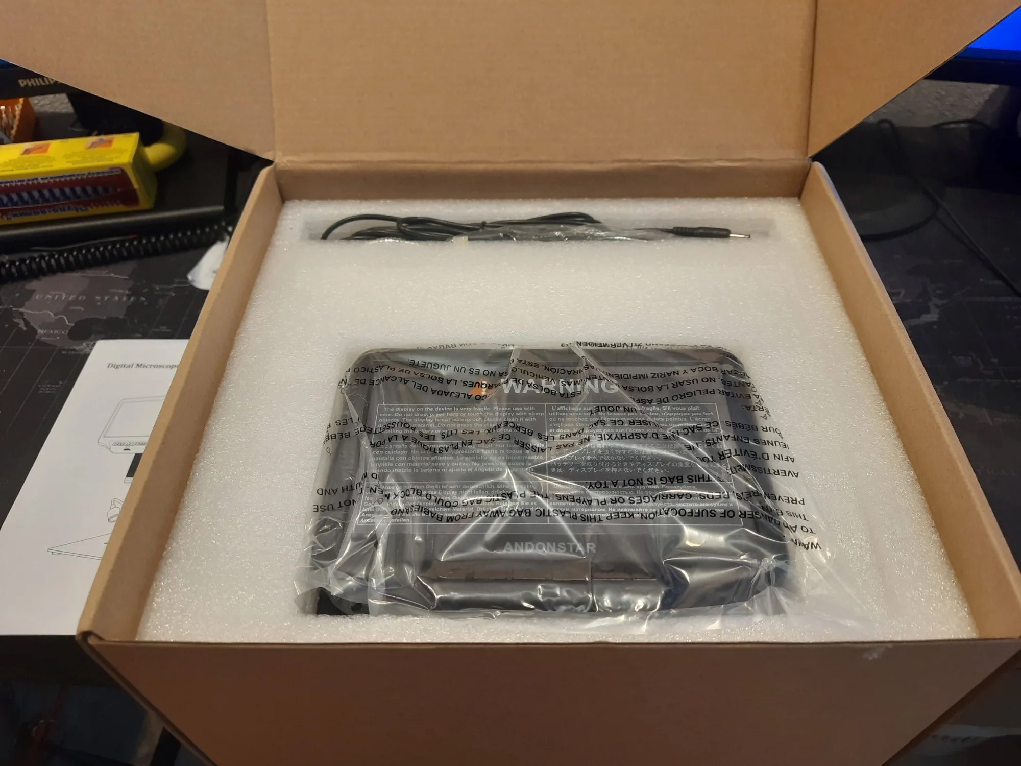 Это просто бомба! Вот это микроскоп! Шедевр! По сравнению с моим бывшим микроскопом это монстр( видно на фото) Качество картинки огонь, увеличение супер, пуль, вообще супер. Прибыла посылка за три дня, упаковка не повреждена, комплектация вся доже положили некоторые запчасти с запасом. В общем я даже не мечтал о таком качестве увеличения, весь вечер разглядывал разные платы, нашел на них несколько косяков которые не мог найти со своим старым микроскопом( микротрещины) Брал для пайки. Продавцу отдельное спасибо, оперативно отвечает на вопросы. Заказывайте не пожалеете!