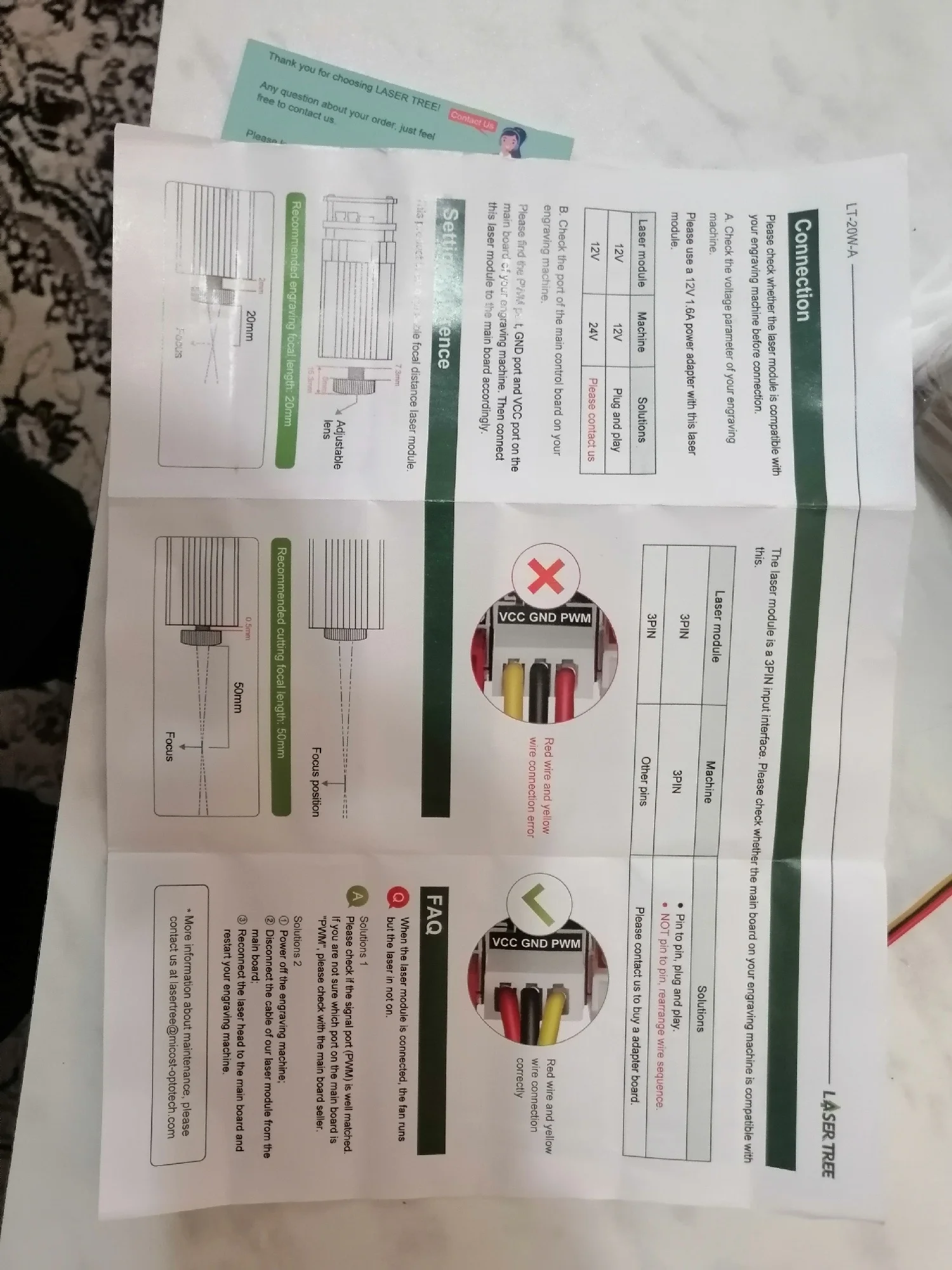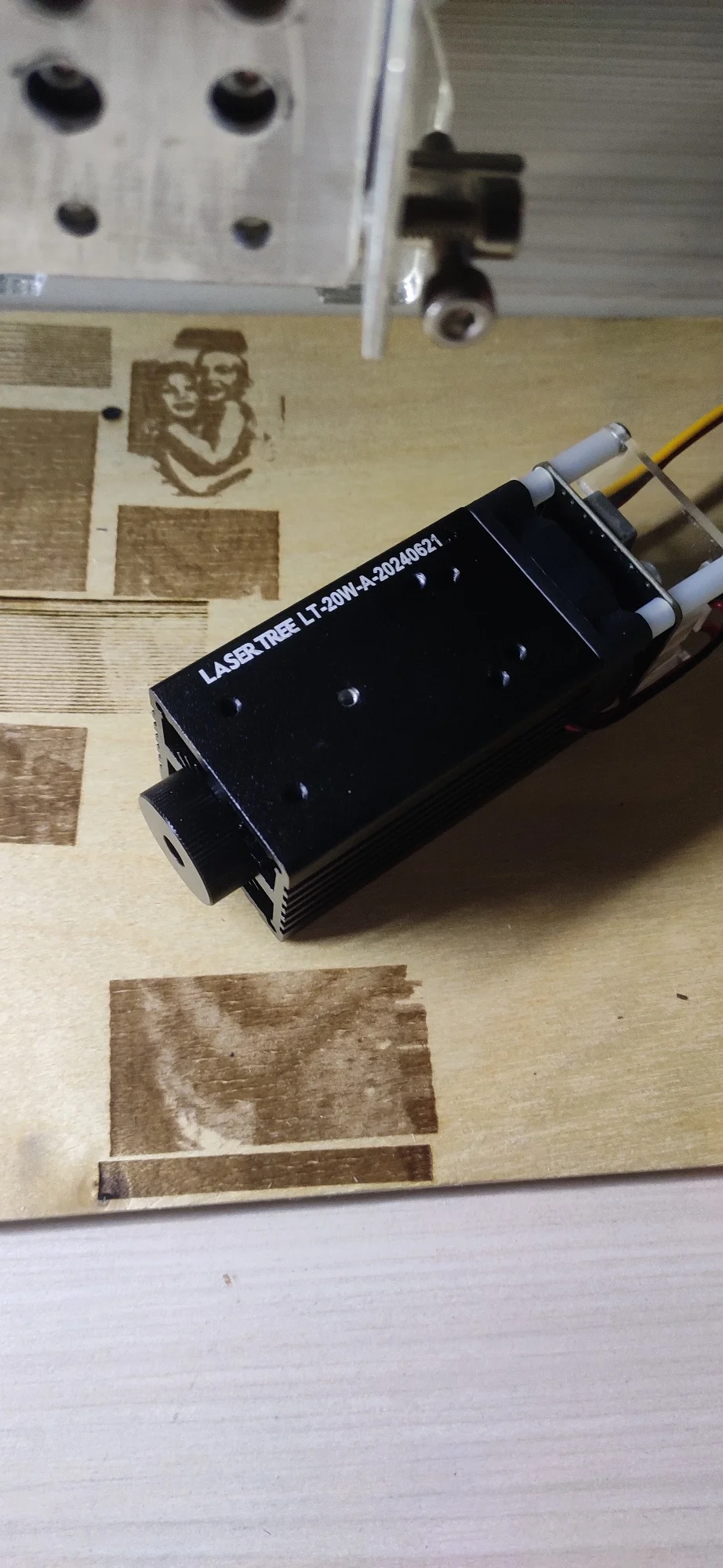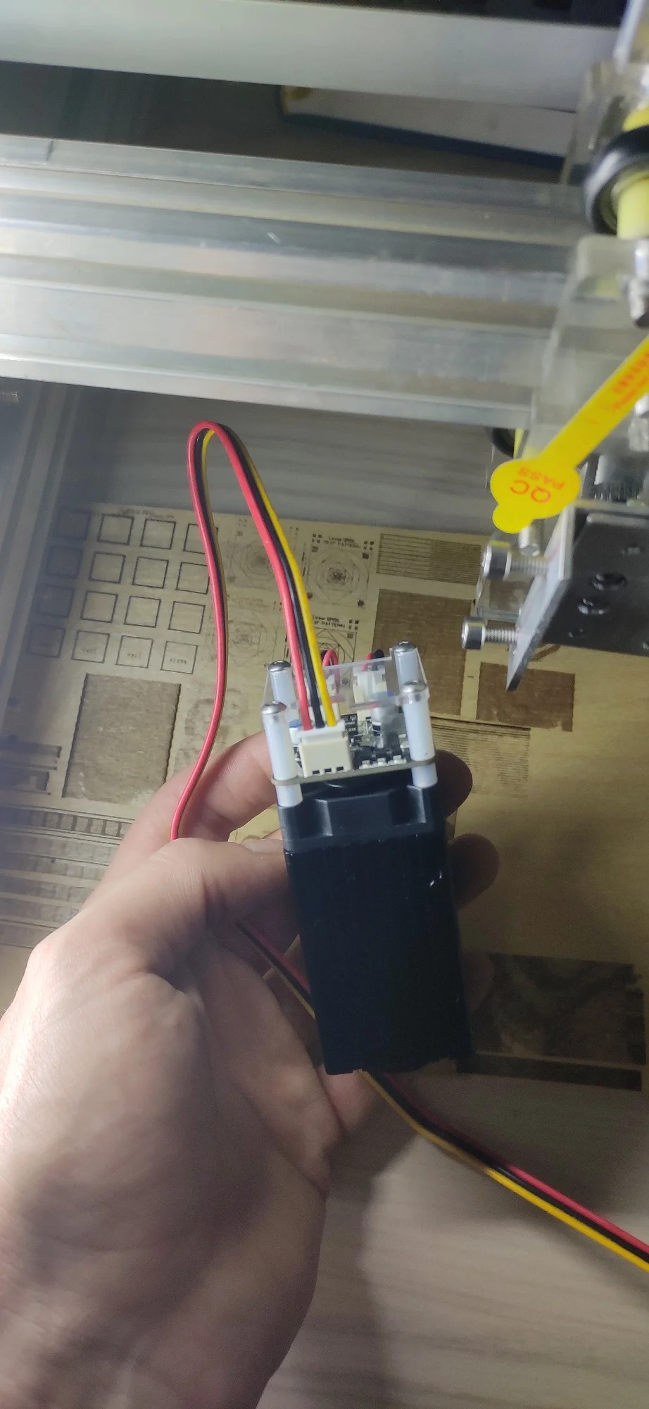 LT-20W-A получил быстро, а станок для гравировки CNC 3018 PRO ещё не пришел. Пока для теста подключил этот лазер БП 12 в, черный минус, красный плюс, а желтый через резюк 10 ком к плюсу. Протестил на коленке вроде жгёт нормально. Когда станок получу дополню отзыв как будет выжигать, впрочем подключать его к 3018 гемор еще тот будет... скорей всего придется желтый PWM инвертировать.