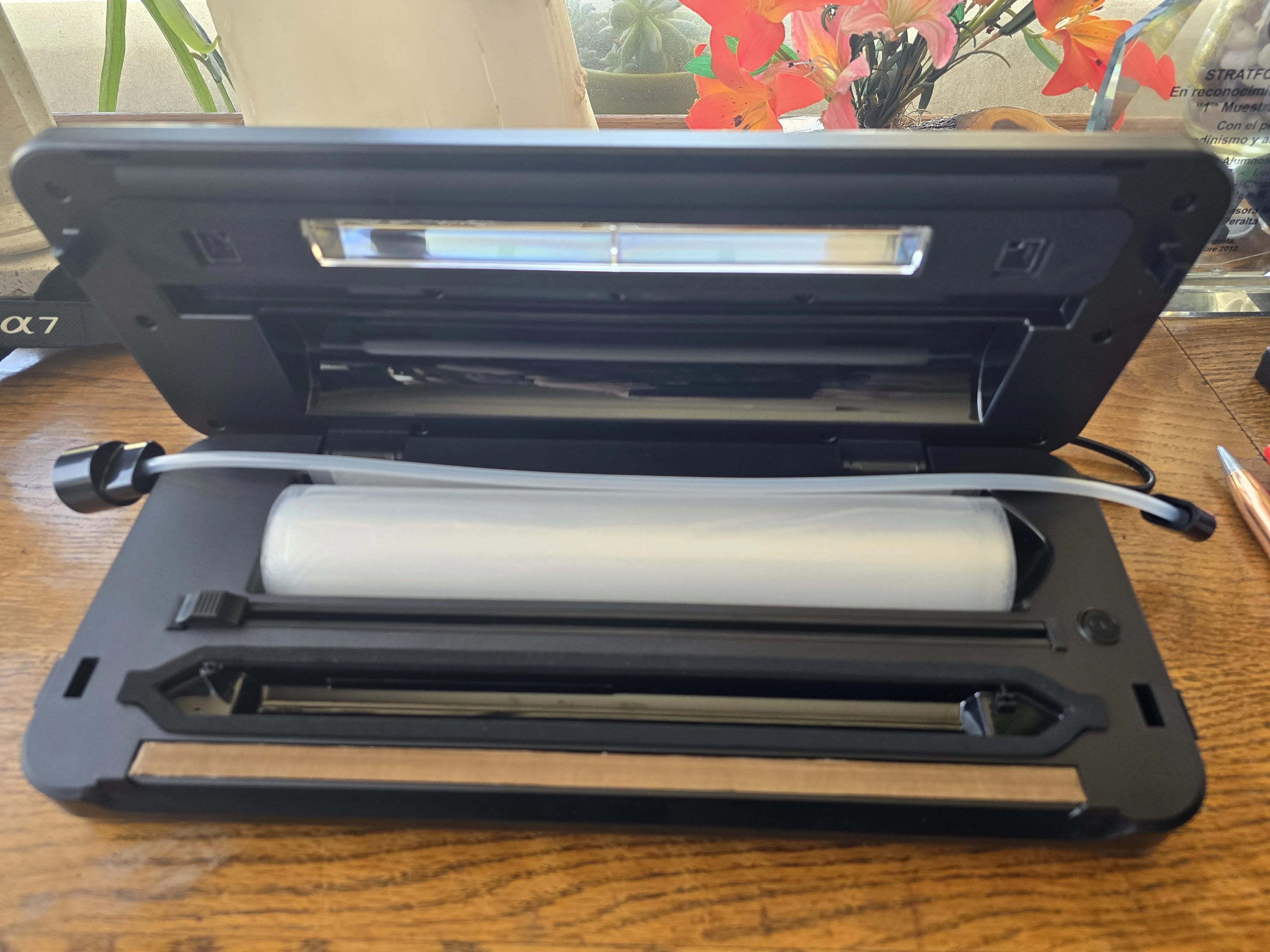 Продавец молодец, отправил в день заказа!Приехал за 6 дней! Упаковка целая. Упаковщик отличный, ваккум создаёт хороший. Зона для контроля правильной заправки пакета с подсветкой. Очень удобно, что есть дополнительная кнопка для включения вакккума при открытой крышке!