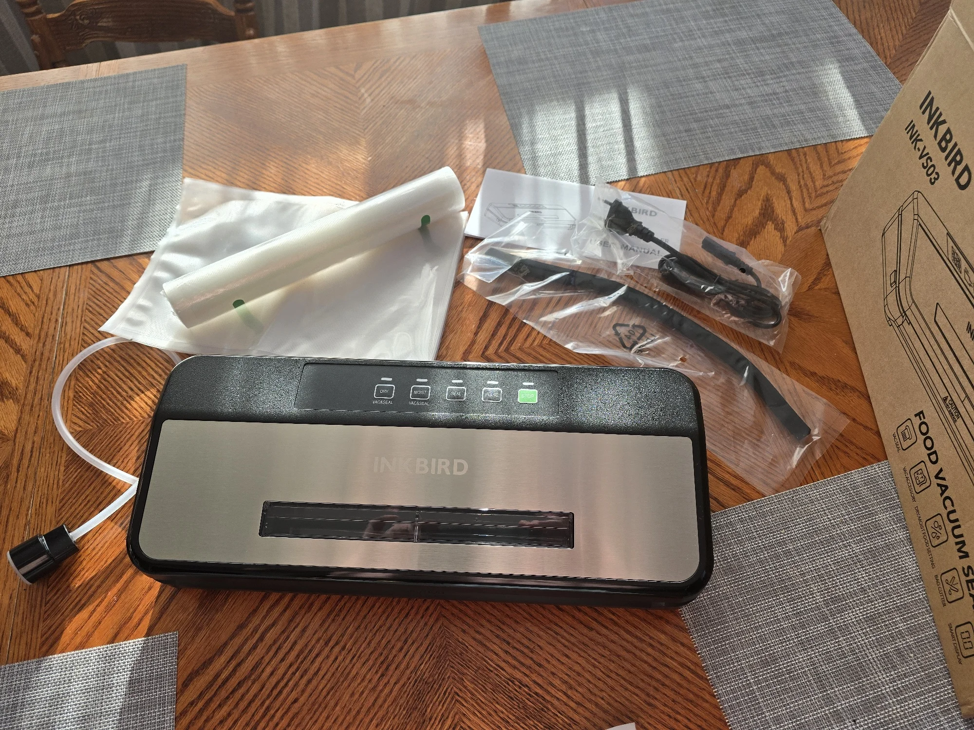 INKBIRD Машина для вакуумного упаковщика пищевых продуктов INK-VS03 Отображение времени запечатывания, сильное всасывание 80 кПа, автоматический вакуумный упаковщик с стартным комплектом для хранения продуктов и Sous VideСГарантия 12 месяцев