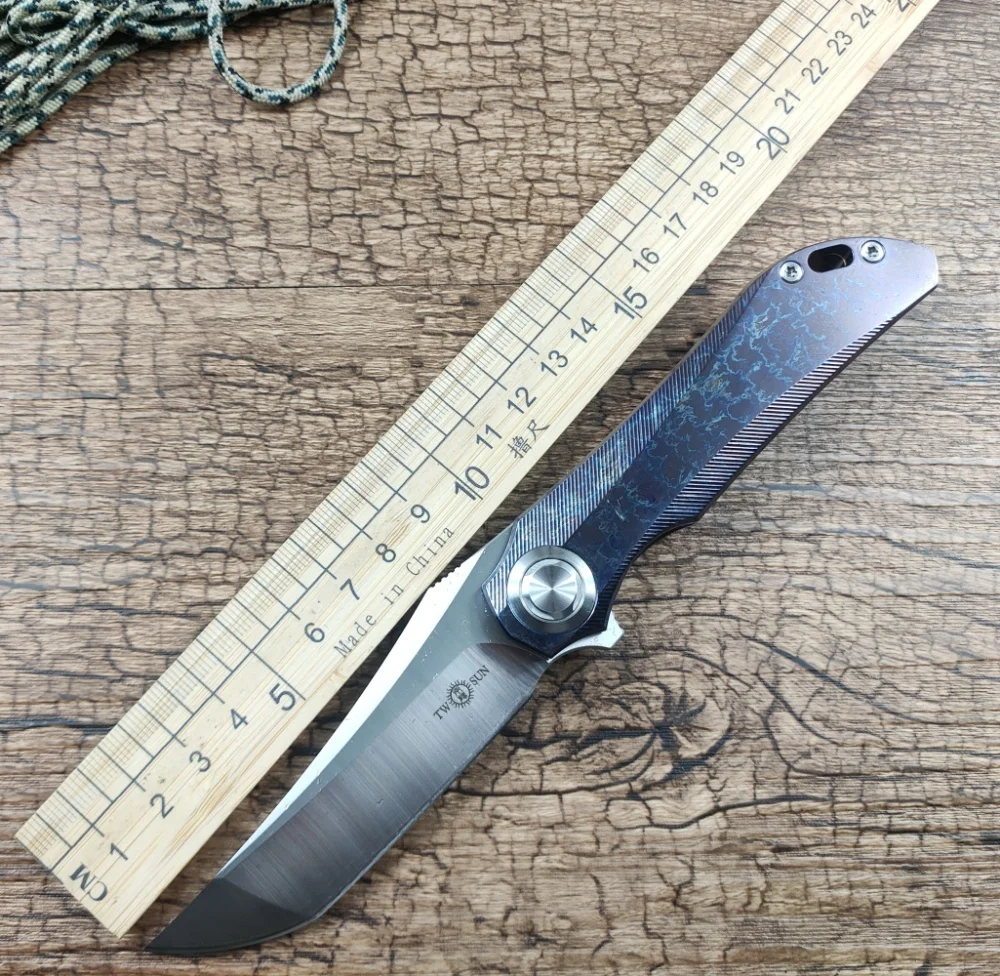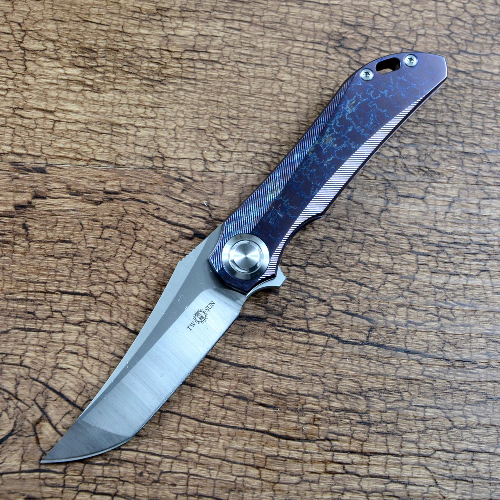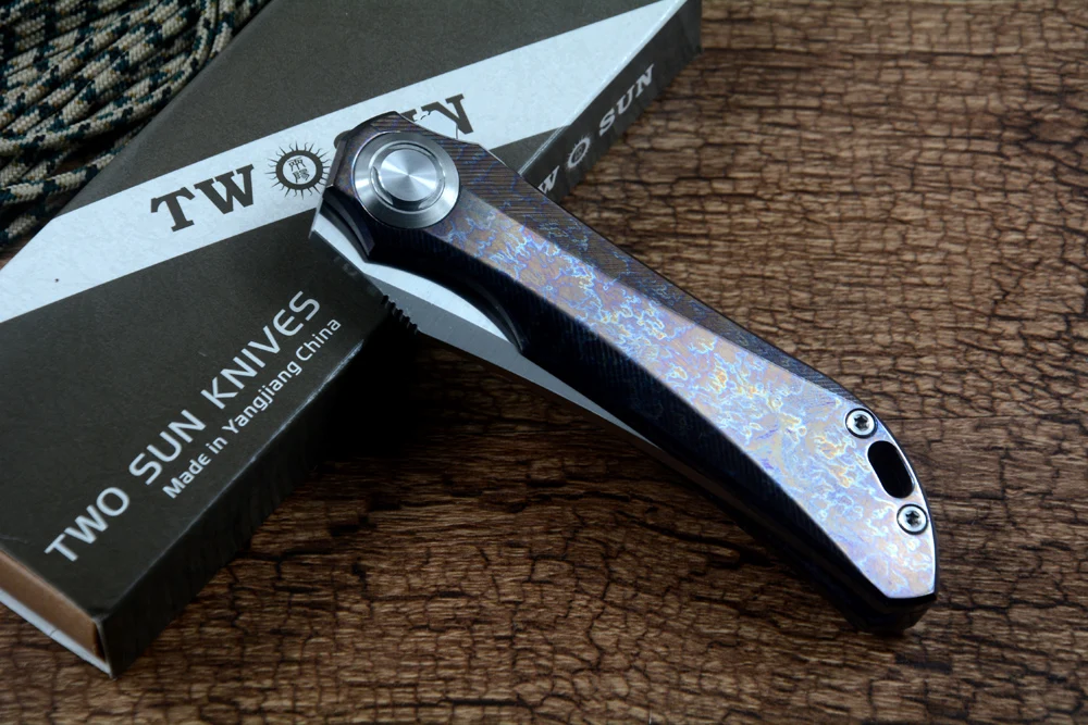 TWOSUN Pocket Folding Knife M390 Satin Blade Colorful TC4 Titanium Handle...