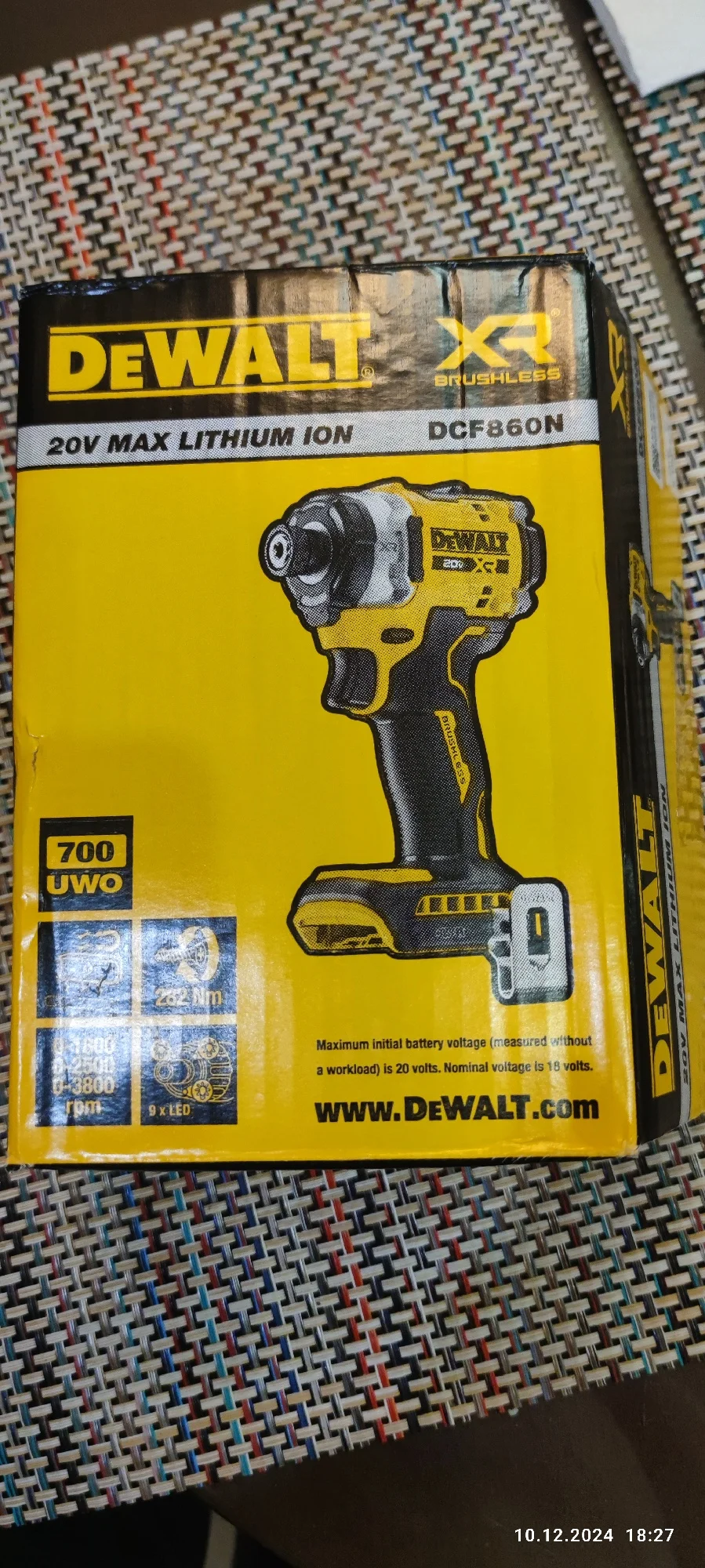 товар оригинальный, все работеет после шуруповерта 778 которым не мог закрутить один болт, этим закрутил на раз два. крутящий момент впечатлил, долго выбирал между 850 и 860 и слава богу взял 860, рекомендую к покупке9300 u. 6 августа 2024