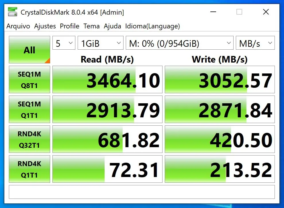 Быстрая доставка в Бразилию, четыре-пять дней (не облагаются налогом). Не нужно общаться с магазином, потому что товар полностью соответствует описанию. Не так много сказать, потому что Топ, используя только windows, тест скорости, чтение atingia 3,4 GB с его полным (Протестировано с 81 GB бесплатно, всего 512 ГБ-около 477 ГБ фактический доступный, признанный системой) и 1,5 Гб письмо с первого взгляда не так хорошо, Но он был почти полный, так что подходит. Тестирование в PCIe 3,0x4 и 3,0x2, и скорость была последовательной и рекламируется рядом, контроль температуры был эффективным, получая в 38 градусов célsius с нормальным использованием (используйте PC браузер, обновление, смотрите видео) и получайте от 40 до 47 градусов célsius с максимальным использованием. Только с тех пор, как предполагалось, достигло 61 градуса célsius; am тестирование в ноутбуке, Acer Aspire 3 a315-23g, которое также влияет. Я все еще тестирую, но качество отличное, рекомендую.