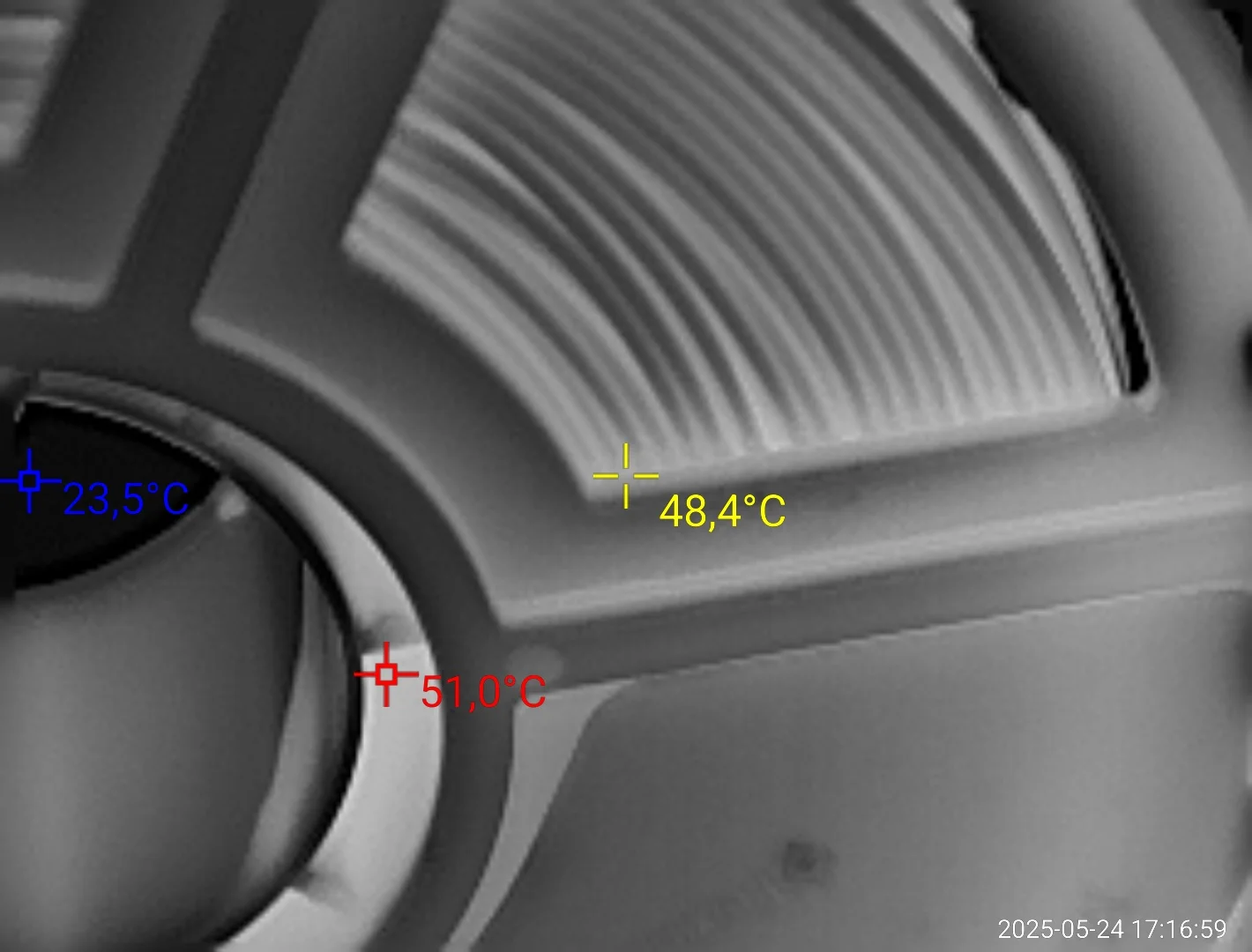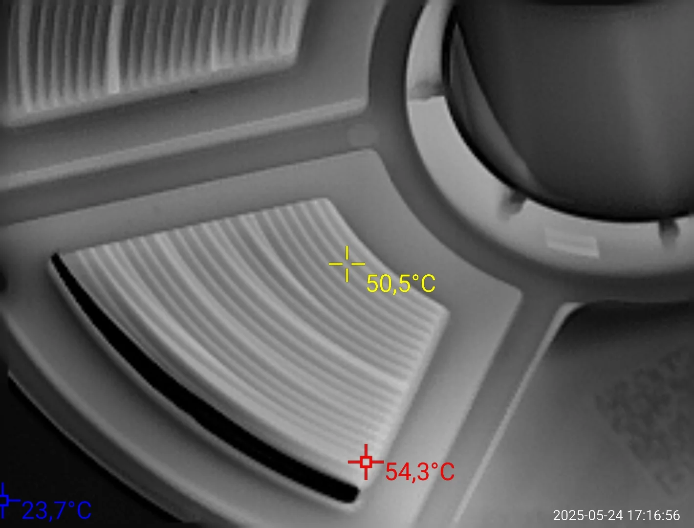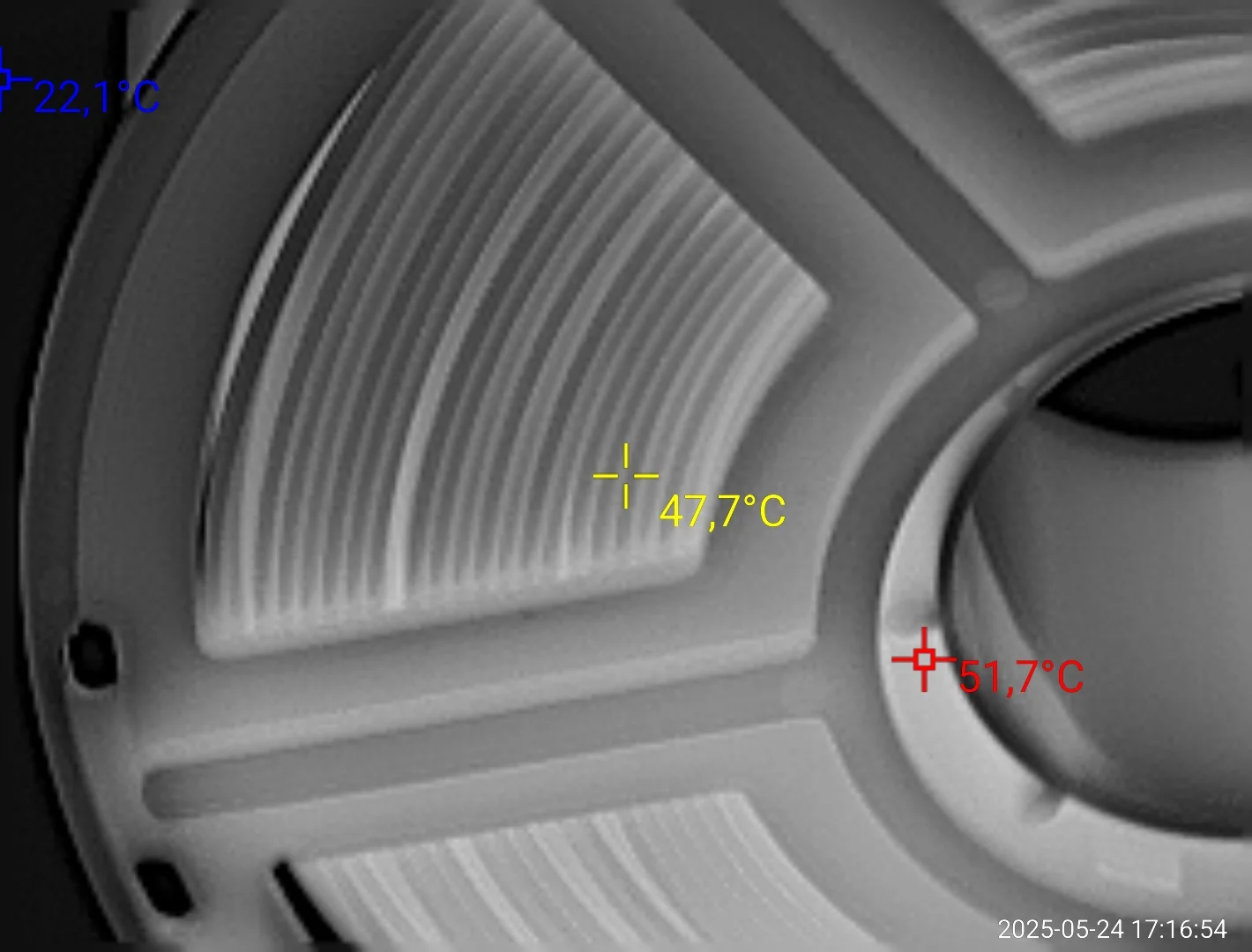 Начну с плюсов: Можно поставить любой платик, другие производители сушилок жмотят жалкие миллиметры, где даже не станет катушка шириной 75мм, тут целых 82мм, взял только по этой причине. Проста в использовании, меню понятное Из минусов: Когда не загружена пластиком, легко теряет равновесие и падает на сторону дисплея, видимо расчитана чтобы в ней всегда был пластик Ножки не резиновые Могли бы положить заглушки для неиспользуемых отверстий, был бы маленький приятный бонус Помогла высушить ABS, 6 часов при 60 градусах, не хотел платик держаться на столе никак(принтер закрытый), после сушки эта беда прошла. Замеры темперуры в камере сушилки не делал, возможно дополню отзыв позже фотки с теплака после 6 часовой сушки, снизу нагревает пластик до 60, сверху около 55