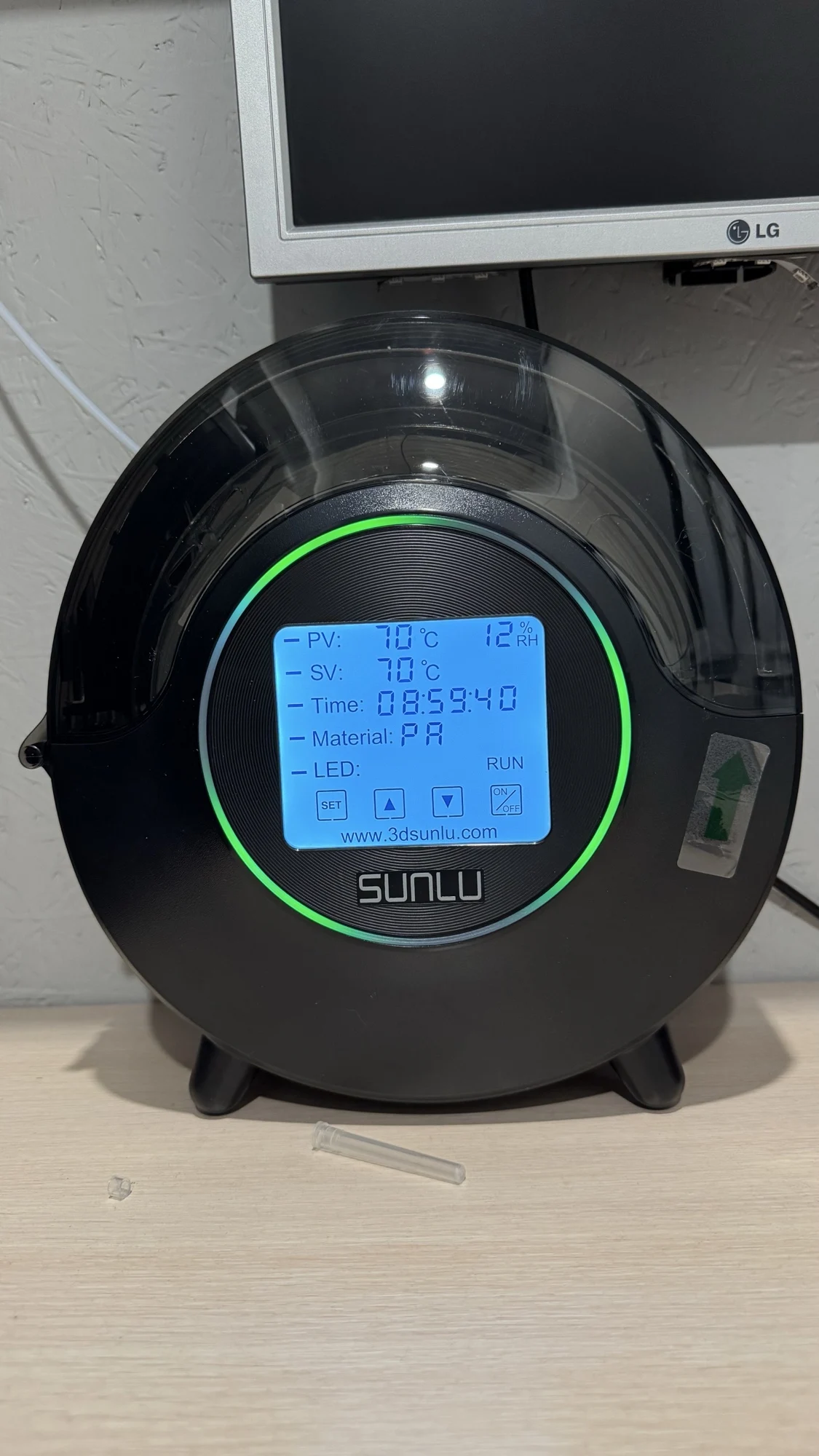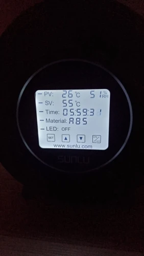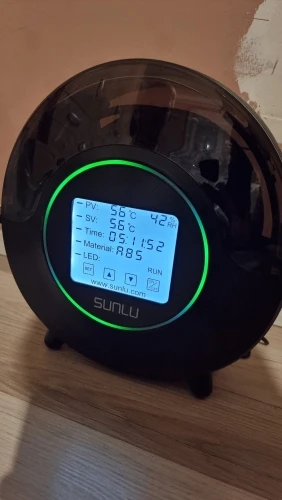 Первый опыт использования превзошел ожидания. Все отлично. Сушилка работает, свою функцию выполняет. Прекрасно справилась с тефлоном за 10 часов. Для меня очень удобно, что можно вести печать непосредственно из сушилки. Сенсор отзывчивый, паразитных нажатий нет. Проста в настройке. Из-за большой площади нагревательных элементов быстро прогревается. Индикация достаточно точно отображает показания температуры. Влажность проверить не удалось, не с чем сравнить, но тот же тефлон высох, обеспечил хорошее качество печати и отличную спекаемость слоев. Вентилятор присутсвует, работает тихо. На максимальной мощности блок питания нагревается не сильно. Соединил тефлоновой трубкой сушилку с принтером. Правда трубке свойственно проваливаться сквозь крышку устройсва, что в итоге может препятствовать нормальной подаче материала. Решилось это очень просто. Отпилил от иголки одноразового шприца пластиковый наконечик и вклеил его в крышку. Тефлон теперь внутрь не проваливается. Трубку лучше использовать 3х4мм, чтобы свести к минимуму дополнительное сопротивление при подаче материала. В целом это отличное устройство для меня станет хорошим помощником при подготовке материала к печати. Доставка тоже порадовала. Все приехало быстро и без повреждений. Вез почтой России.Nikolay V. 23 февраля 2025
