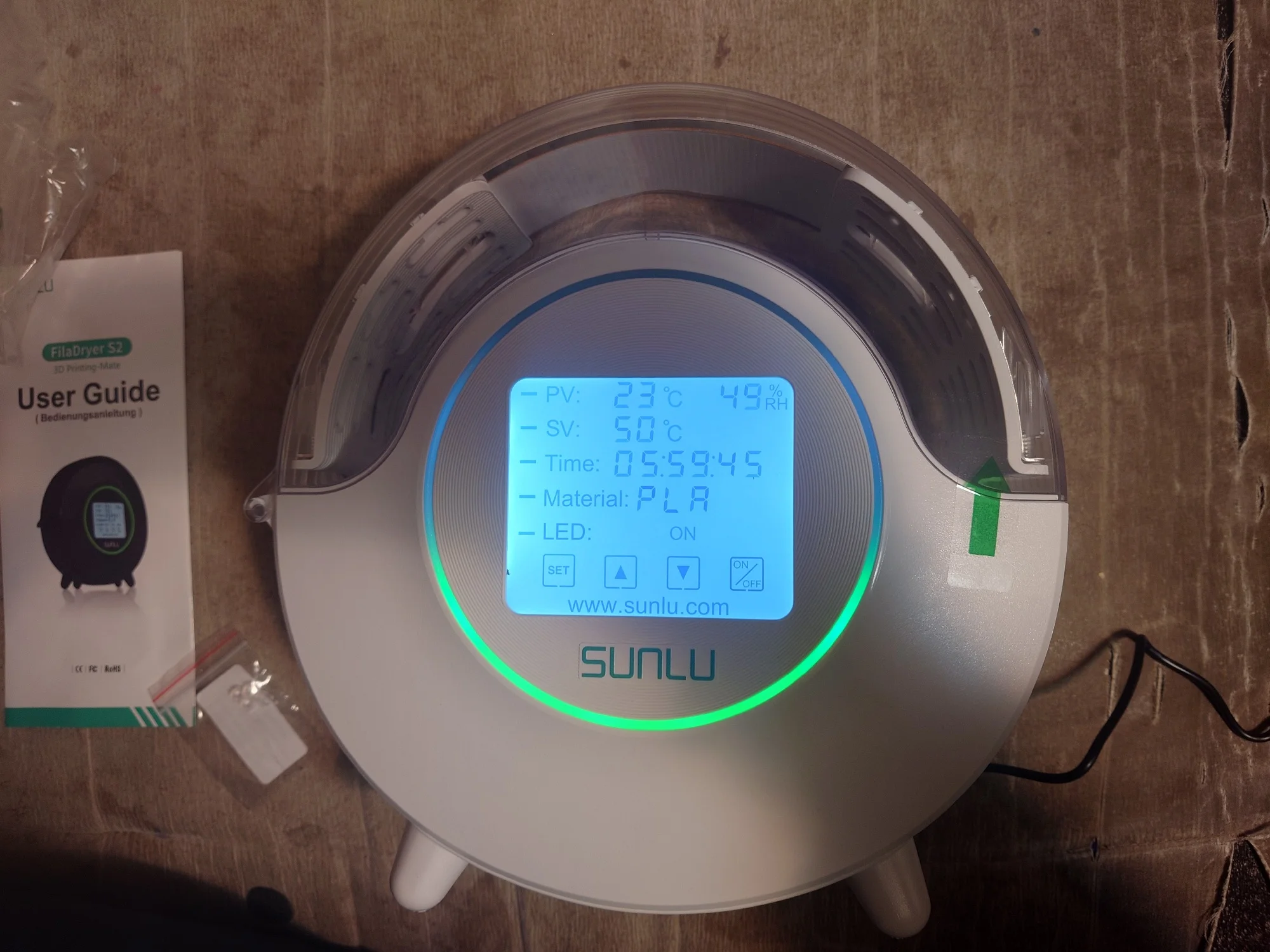 Estimate the drying effect According to the humidity in the box: the humidity first rises and then fallsduring the printing process. Reference settings: PLA/PLA+/SILK/Wood/PETG: 45 -50 , 3-6 Hours.
