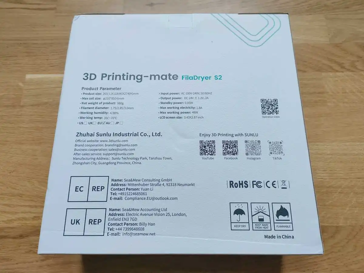 SUNLU S2 3D Filament Dryer LED Touch Screen Dry Box 360º Surround Heating...