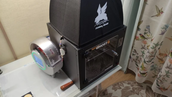 Ну для GHOST 6 с колёс он не пойдёт, потому что дырка почти на уровне датчика в принтере. Придётся, что-то колхозить, если хотите, чтобы крышка была закрыта или же можно с приоткрытой крышкой. Ну и БП надо было белым сделать, а то всю красоту портит.