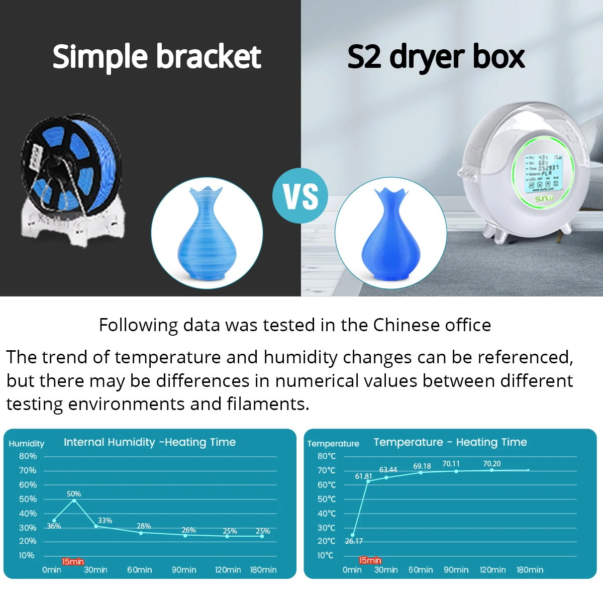 Intelligent control: Intelligent presets for multiple filaments and drying modes, no need manual setting. You can set drying modes that you want to. Once set up, you can use it all the time.