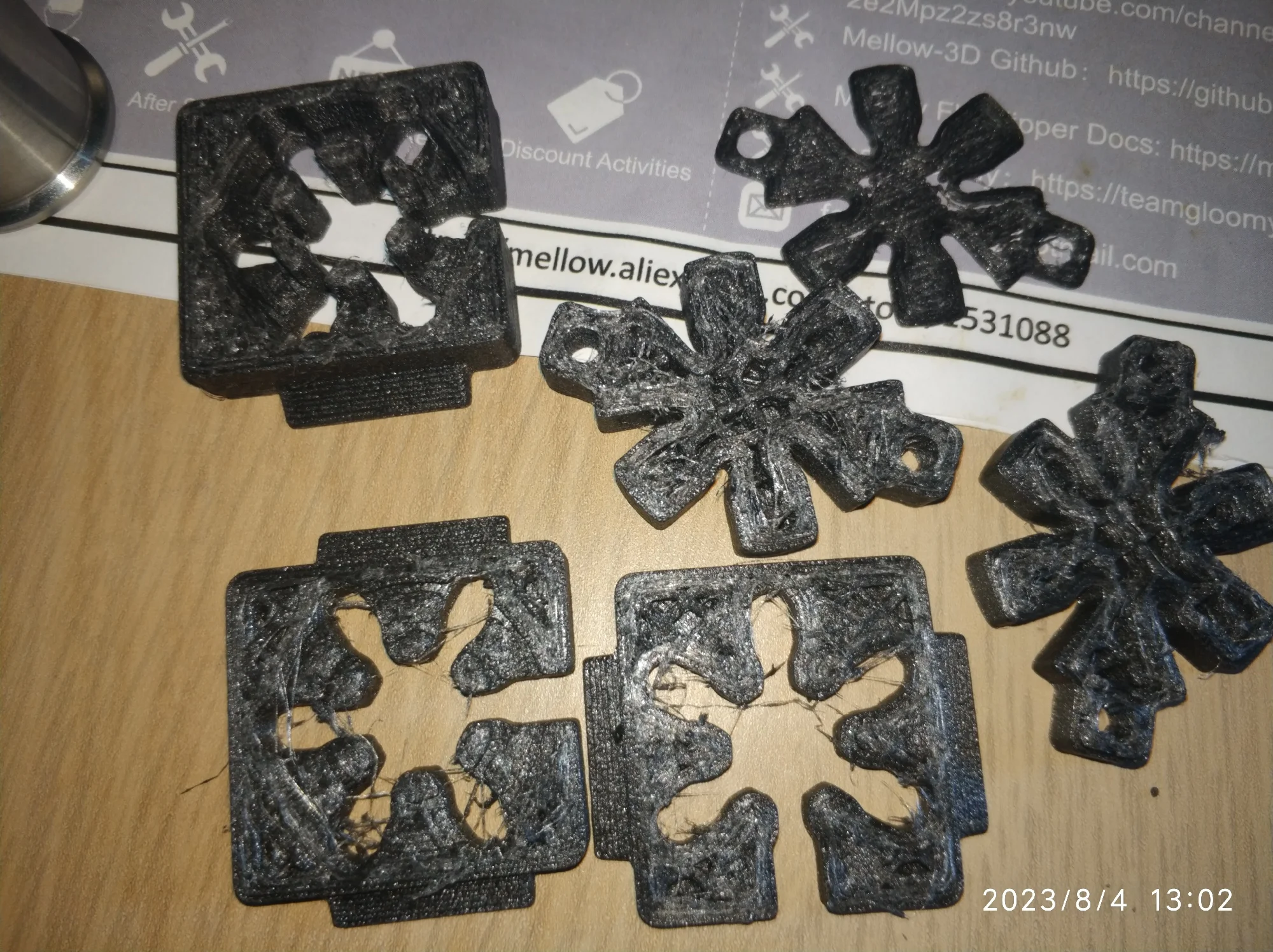 Пластик заставил помучаться. Соплом 0,4 ни на каких режимах печататься не хотел, забивал сопло и кирдыц. Соплом 0,6 начал нормально печатать только в режиме стенки без заполнения. Видимо, для него "ретракт" слово ругательное. Ну и волосей натянул - куда уж без них. Печать на режимах: стол 70 градусов + клей (иначе не оторвать после печати), сопло 265 градусов (принтер Creality K1)Natalia Z. 7 августа 2023