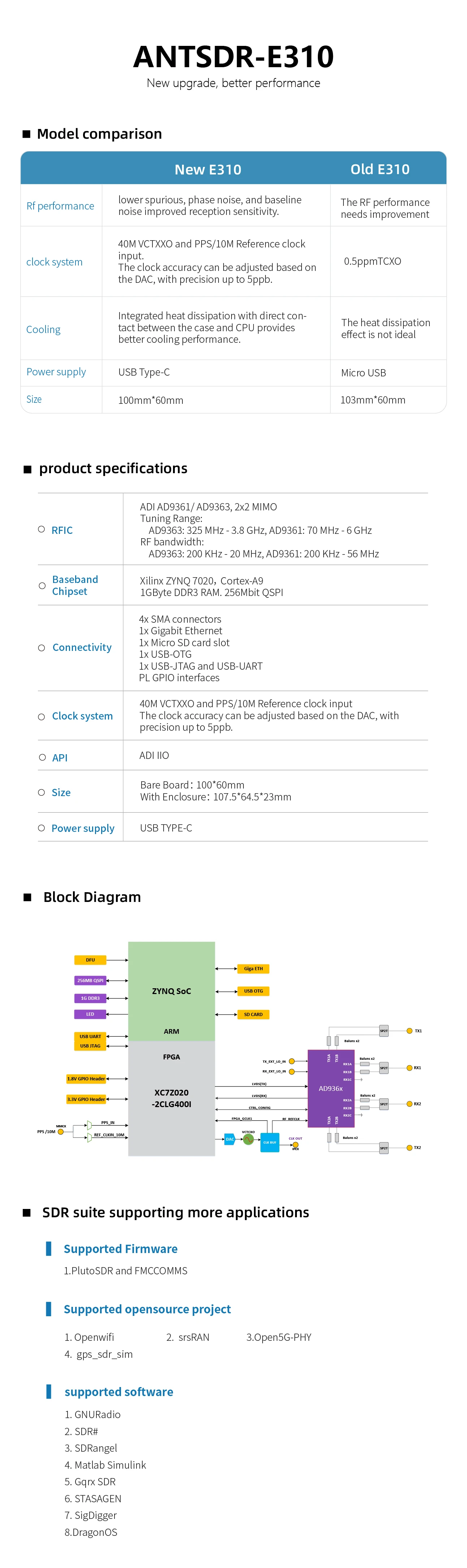 MicroPhase ANTSDR E310 Software Defined Radio ZYNQ 7000 SoC XC7Z020 ADI AD9361...