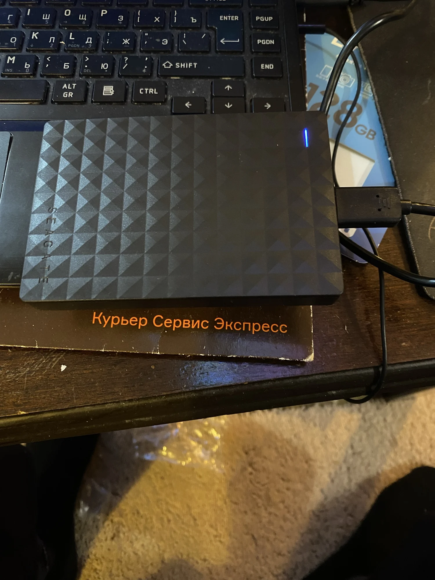 Товар получил в пЯтерочке. Хорошо упакован в пенопласт как хрусталь!. Все соответствует описанию. Все хорошо. Покупал для хранения файлов. Скорость записи и чтения устраивает. Покупкой доволен. Только шнур не стандартный если потеряешь не чем подключить. Буду заказывать запасной .