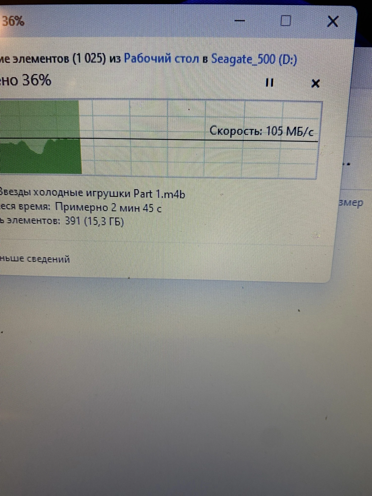 Товар приехал быстро - в Москву за 10 дней. Упакован хорошо - упаковка на первом фото. Кабель в комплекте. Объём диска соответствует заявленному. Подключается к PC по USB-2.0. Не подключается по USB-3.0. Скорость записи большого файла 40 МБ/с - на фото. Одну звезду убрал из-за того что не подключается по USB-3.0.Dmitry B. 28 августа 2024