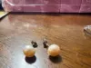 Хорошенькие серьги. Размер одинаковый, застёжки плотные. Одна серьга идет с чуть фиолетовым отливом, но это только если присмотреться, на ушах естественно не заметна эта разница.