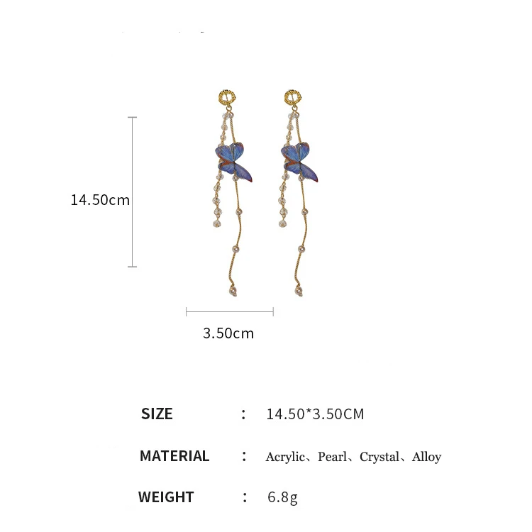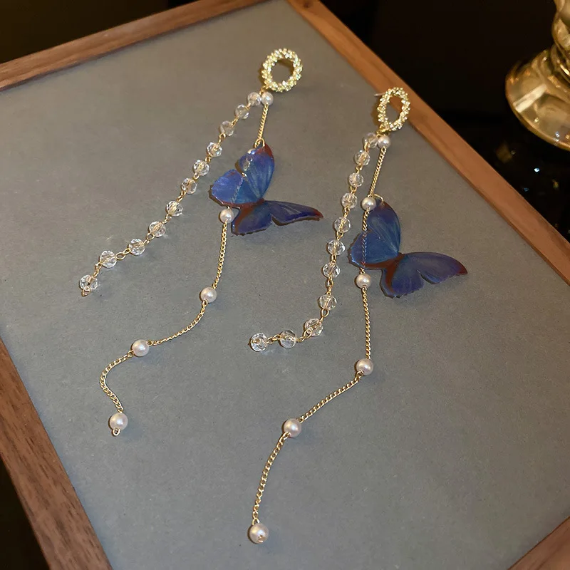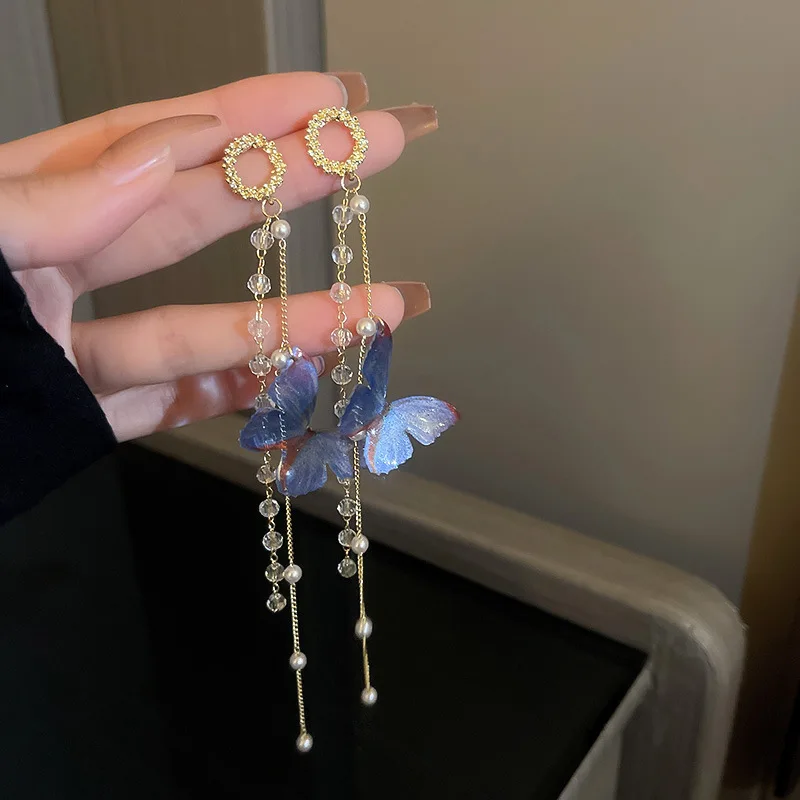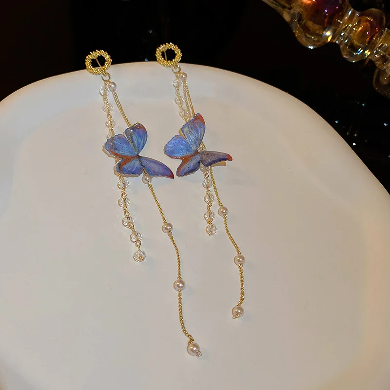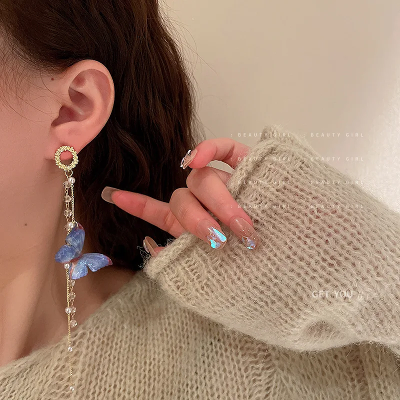 Pearl Crystal Acrylic Blue Pink Butterfly Tassel Earrings For Women 2022 New...