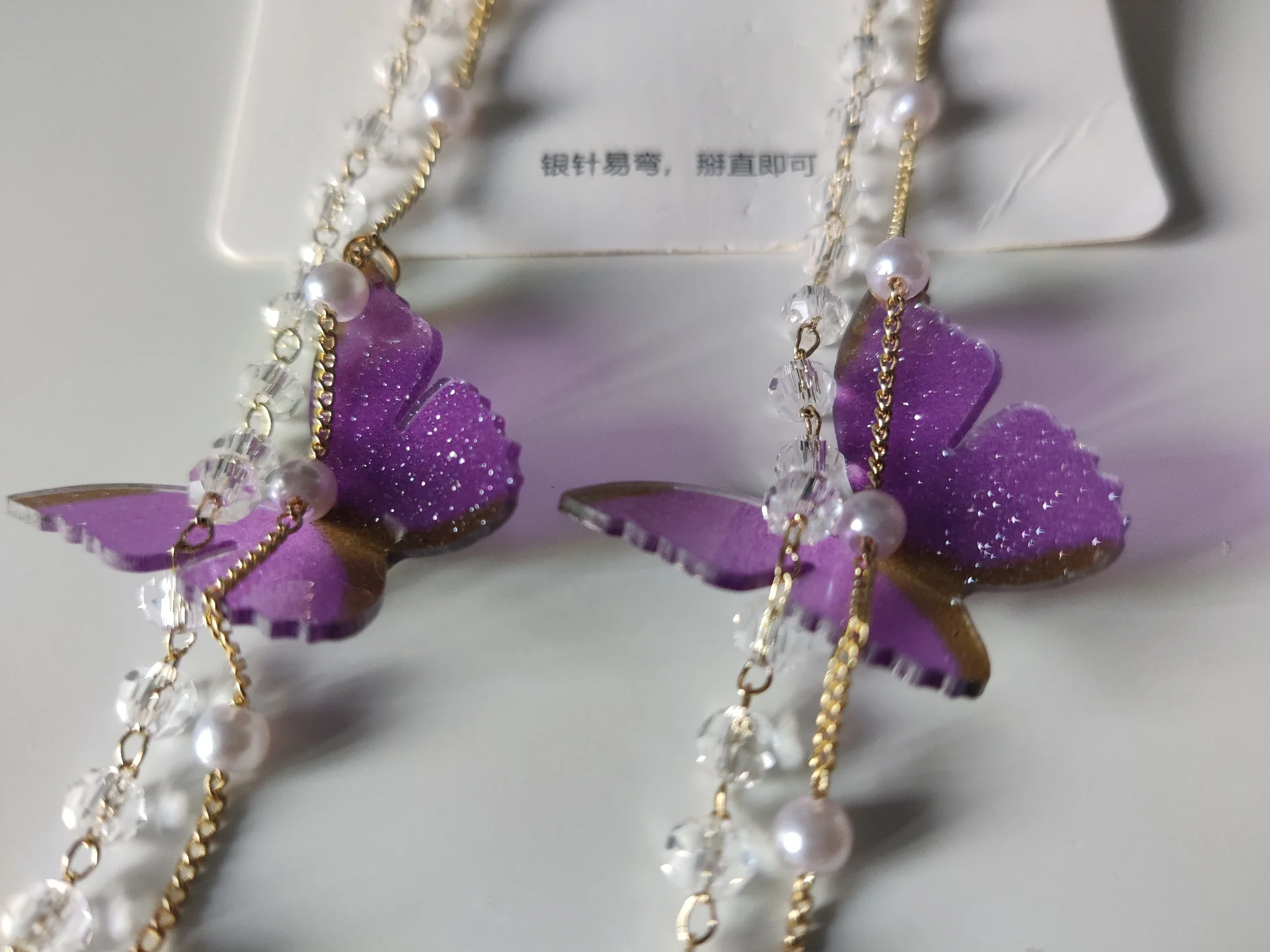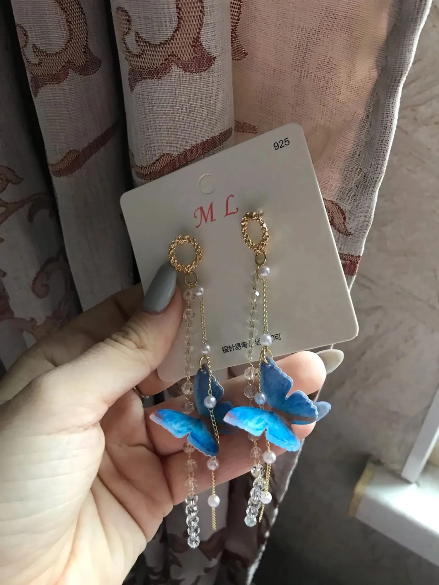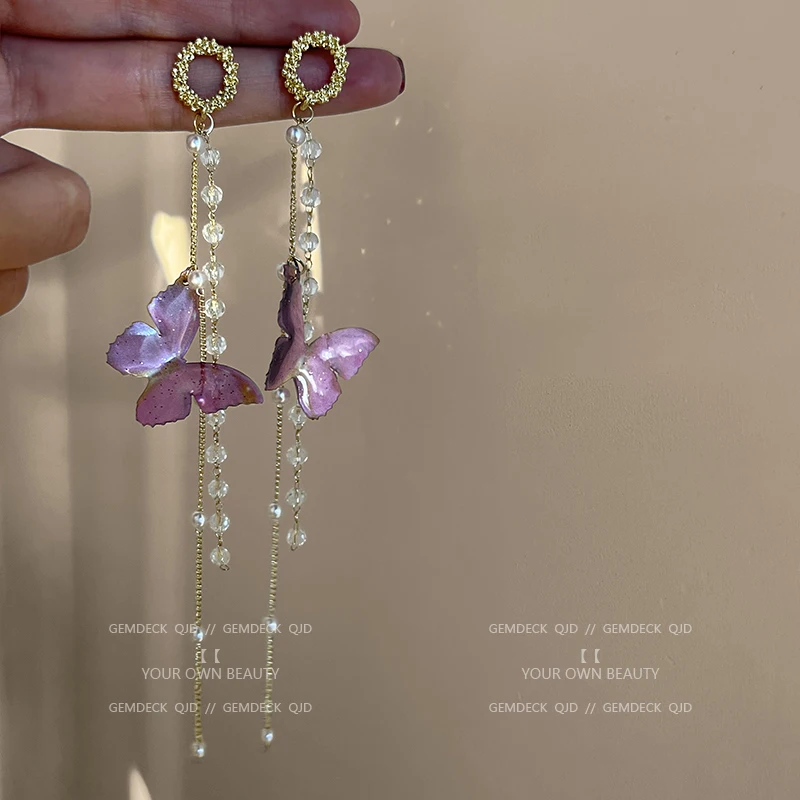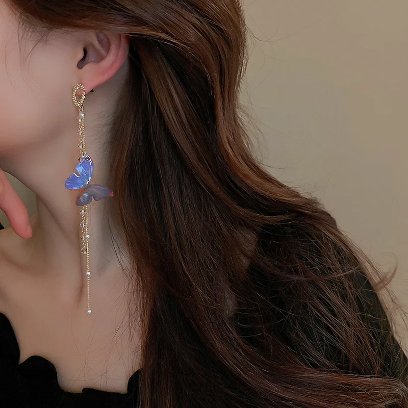 Pearl Crystal Acrylic Blue Pink Butterfly Tassel Earrings For Women 2022 New...