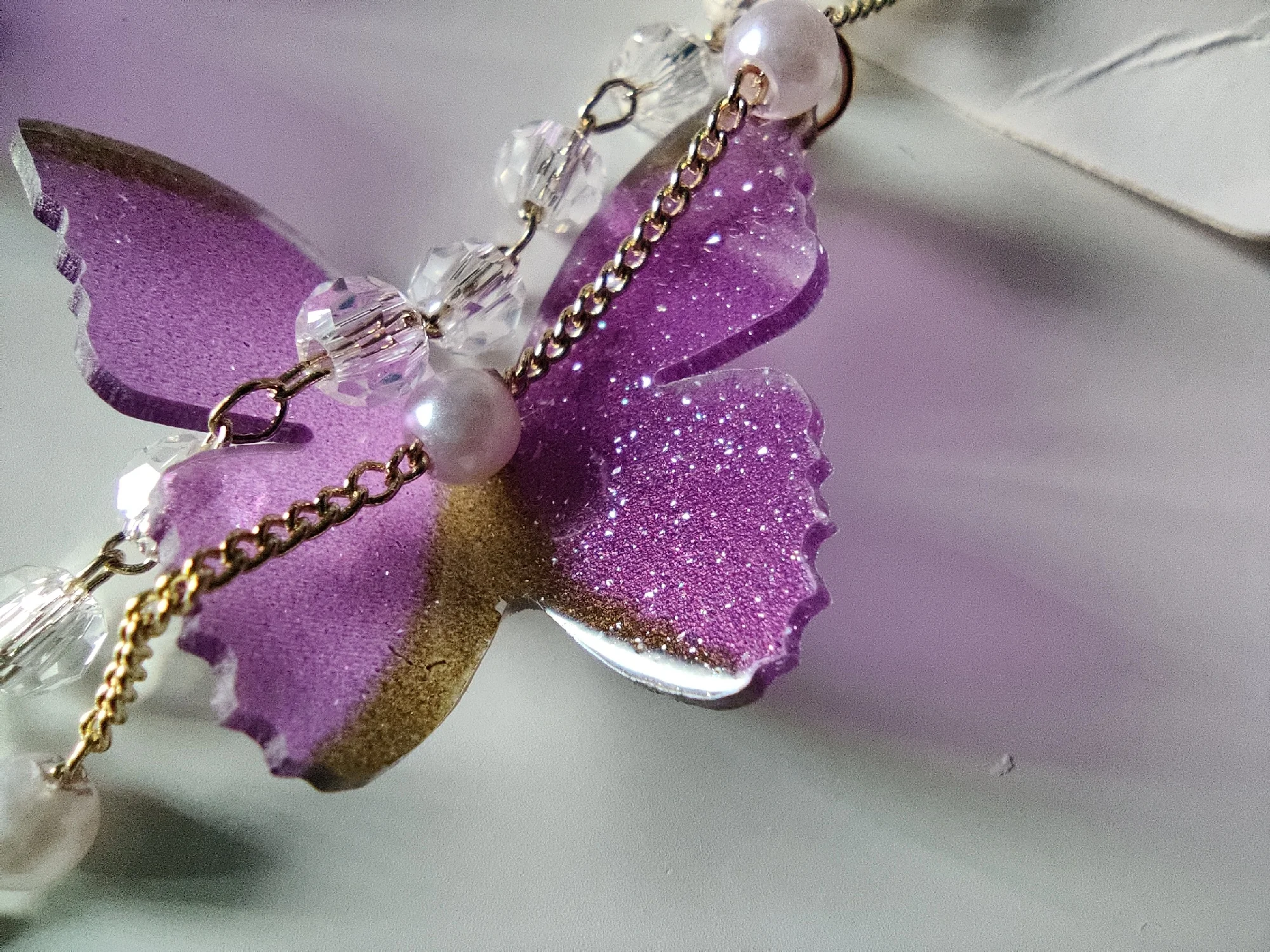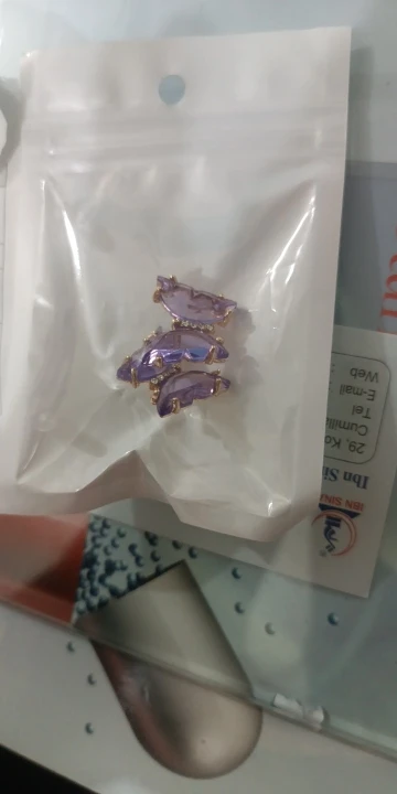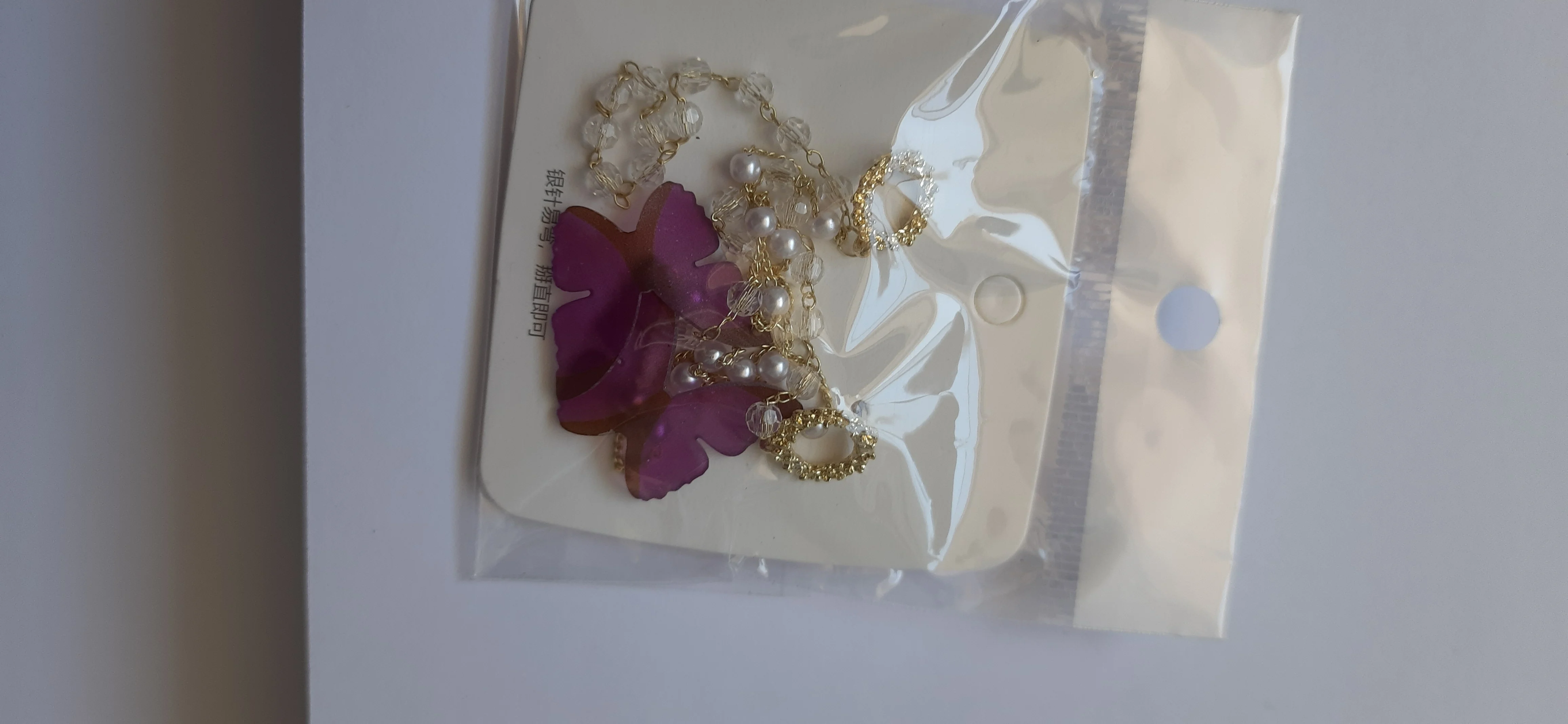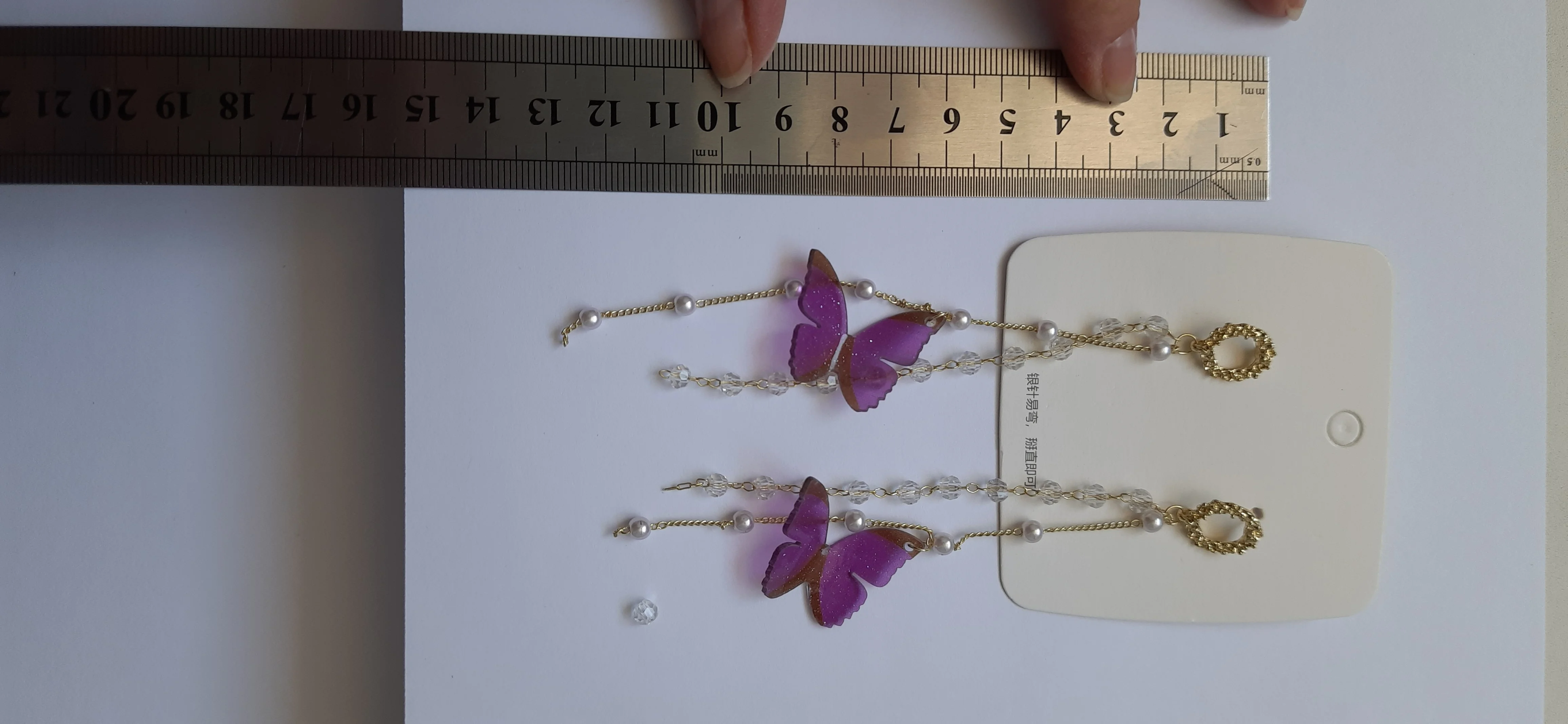 Серьги красивые, хорошо, что бабочки прозрачные, фиолетовый цвет виден и спереди и с обратной стороны, а бабочки сильно крутятся обратной стороной (лицевая сторона с блёстками, обратная без них). Но цепочки местами склеились с бусинкаии, выпрямить не получилось, от этого серьги получились разной длины. Также одна бусинка сразу вывалилась из пакетика, удалось её вернуть на место и поправить звенья цепочки, чтоб бусинка держалась.12 0. 27 мая 2023