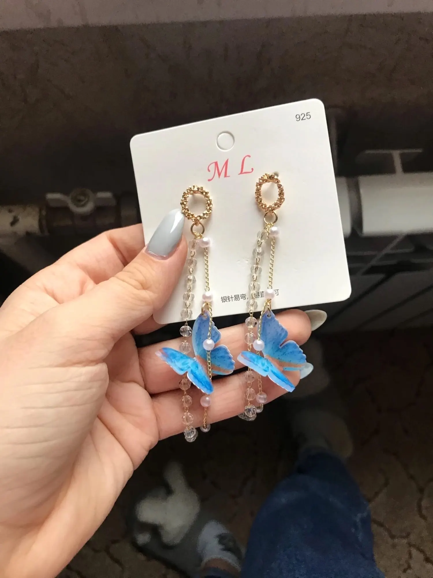дешёвый пластик, не равномерный цвет бабочек, металл гнётся очень легко, серёжки на один раз, вживую выглядят не красиво