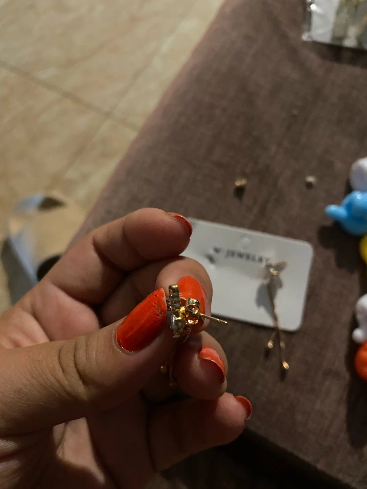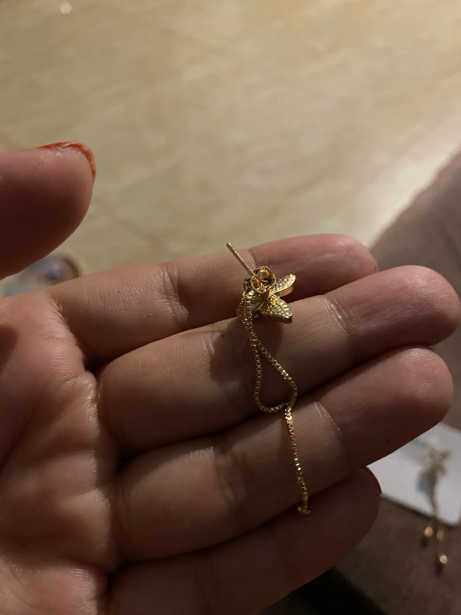 сами серьги красивые, но то что они сильно загнуты не очень красиво, + белая подложка портит вид. также они сильно крутятся и при ходьбе все будут видеть не самих бабочек, а их белую сторону.