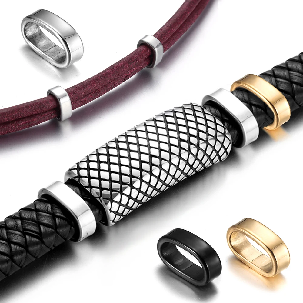 Made in 316L titanium stainless steel with an die casting, Impeccably crafted with mirror finishing and blacken, This large-hole Spacer beads and sliders feature wider stringing holes for all kinds of jewelry making possibilities. They are better for interchangeable creations, and for quick yet eye catching projects. If you love leather creations or Pando-style bracelets, you'll adore these beauties. The large hole beads is an essential and timeless piece of men's round leather cord bracelet jewelry supplies.