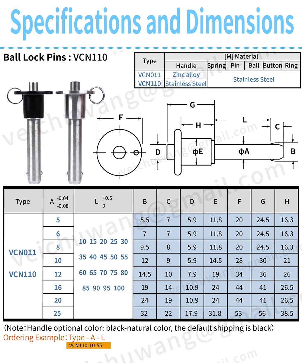 VCN011 Quick Release Pin Zinc Alloy Push Handle Stainless Steel Locating Pins...