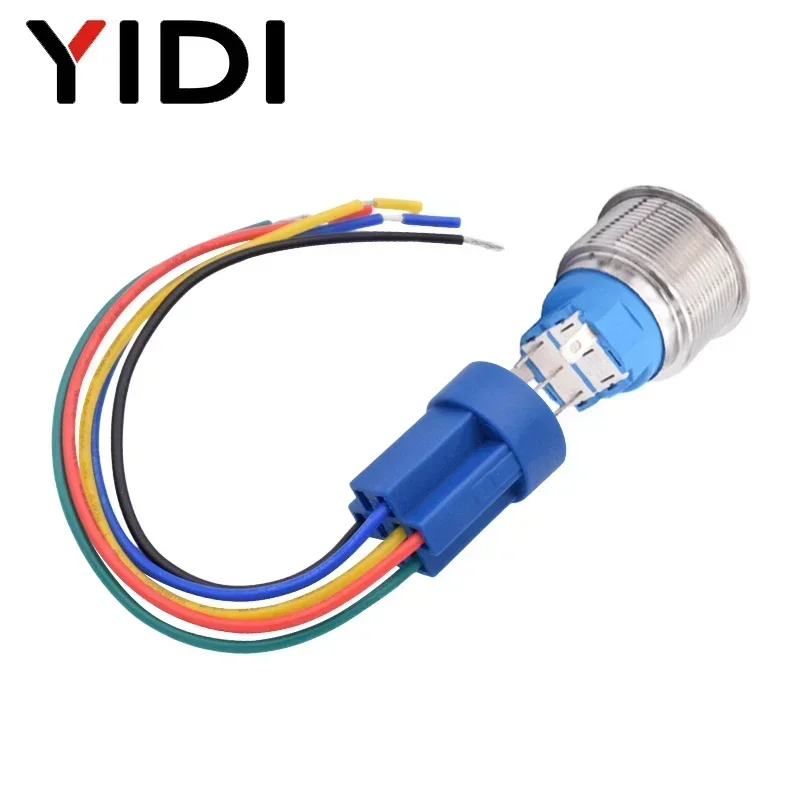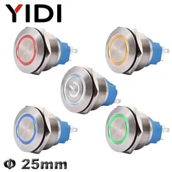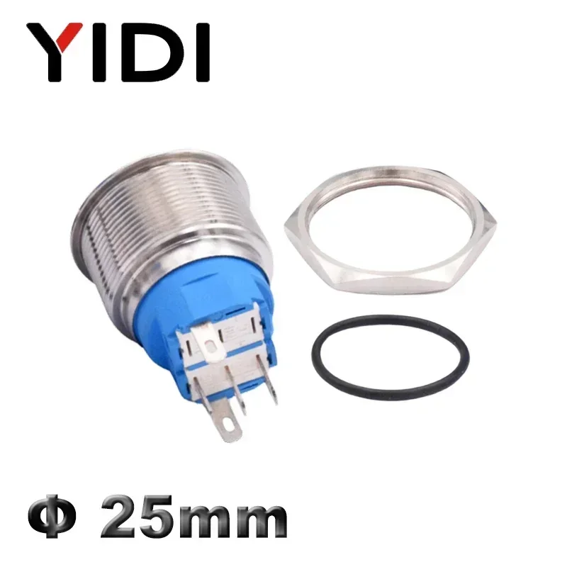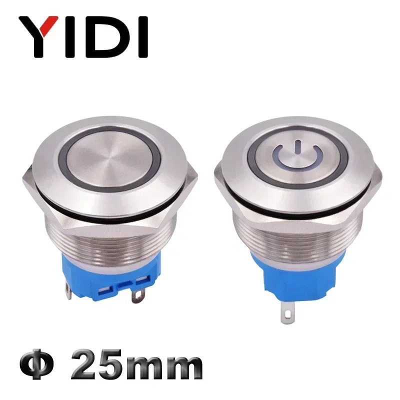 YIDI индивидуальный 25-миллиметровый антивандальный металлический кнопочный переключатель, водонепроницаемый кольцо с плоской головкой, латунный переключатель из нержавеющей стали со светодиодной подсветкой, кнопка SPDT DPDT 1NO1NC 2NO2NC, мгновенный переключатель с фиксацией
