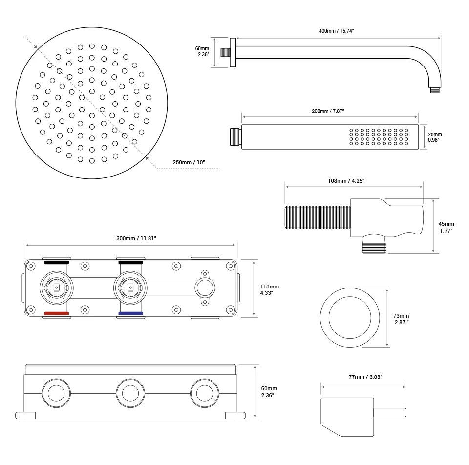 Размер насадки для душа: 8 / 10 /12 дюймов