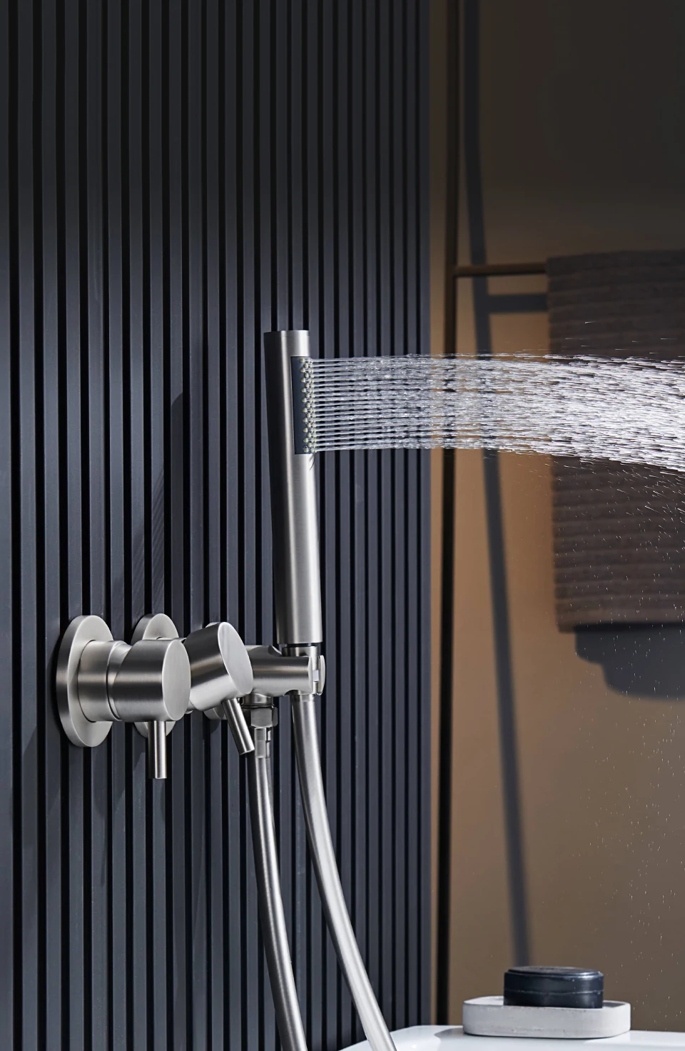 Набор смесителей для душа Смеситель для ванной комнаты Смеситель для ванны Набор ручных отводов из матовой никелевой латуни 8-12 дюймов Набор настенных рычагов с насадкой для дождя