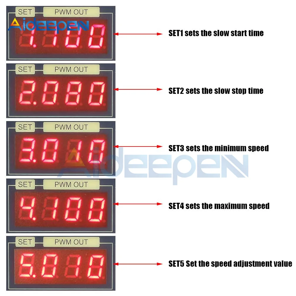 5. Функция 5: "" 001 "002" ", " "005" ", " "010" ", " "015" ", " "020" ", " "025" ". Скорость будет меняться на 1%, 2%, 5%, 10%, 15%, 20% при каждом нажатии кнопки «Плюс» или «минус».
