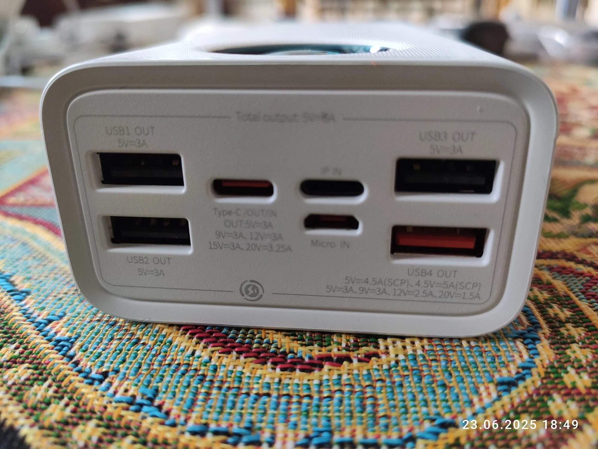 USB 1+USB 2+USB 3+USB 4+Тип C Выход: около 15 Вт+45 Вт