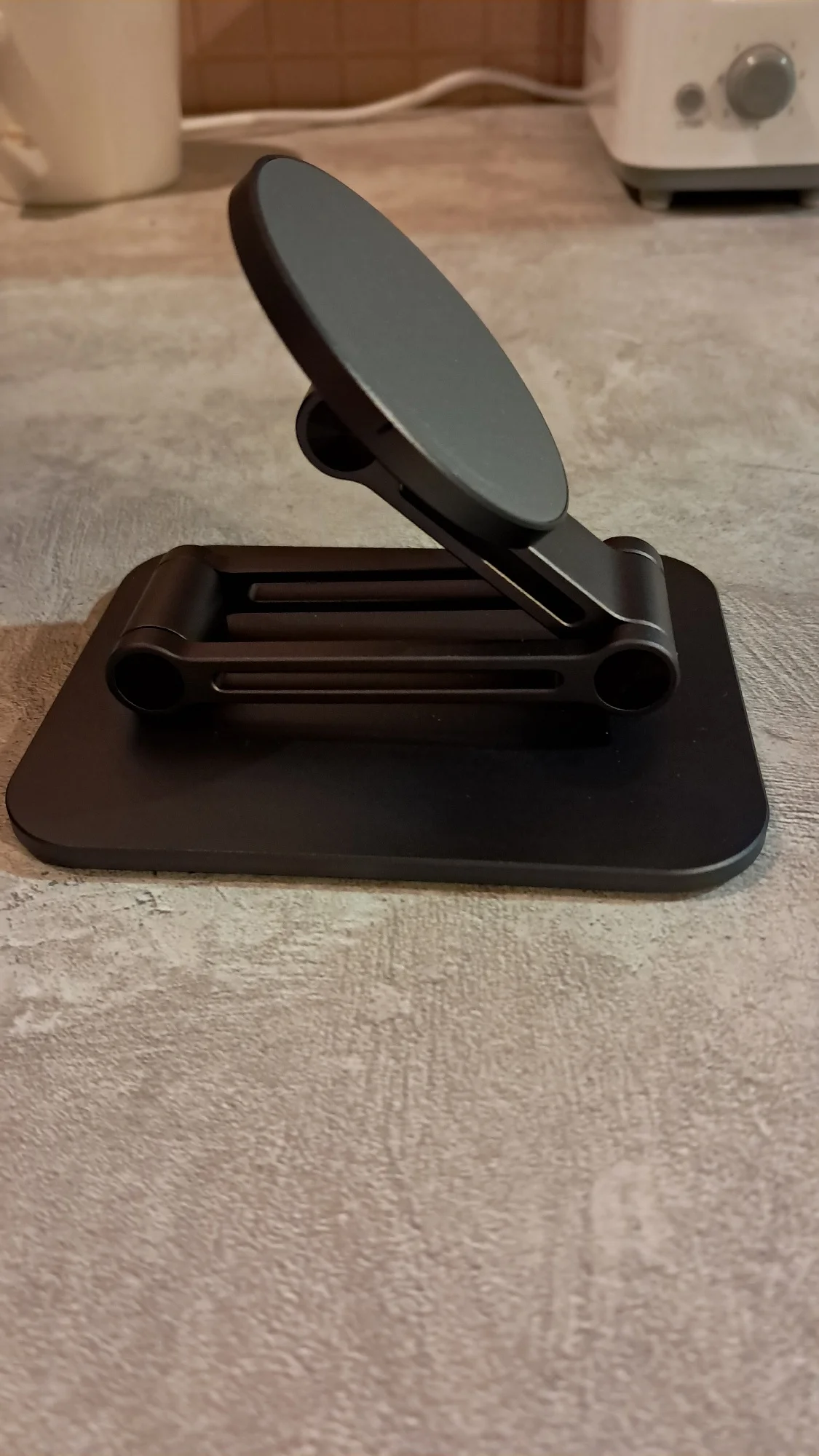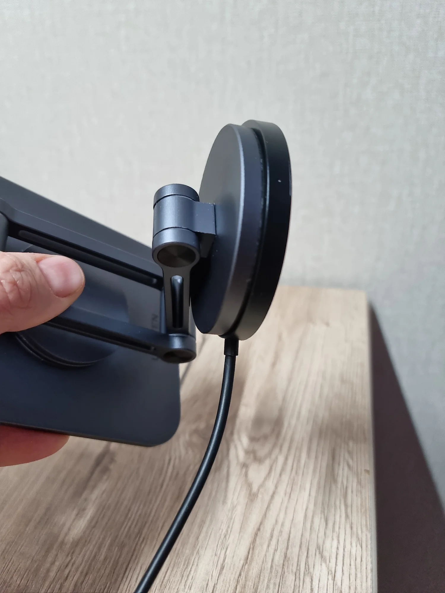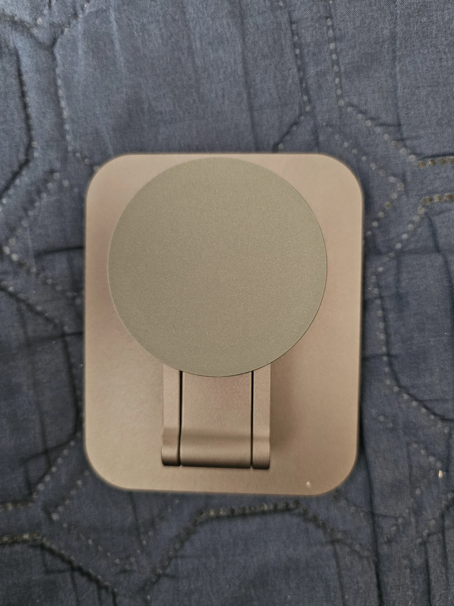 Отличная подставка, например, чтобы кушать и смотреть видеоролик на YouTube. Не заряжает телефон, кабель нужно подключать обычным образом через разъём. Для телефонов без MagSafe в комплекте есть одно металлическое кольцо и влажная салфетка. Можно приклеить кольцо и пользоваться подставкой. Материал - металл, качество офигенное, крепление и механизм шарниров - надёжные! Ножка прорезиненная, скользить по столу не будет.