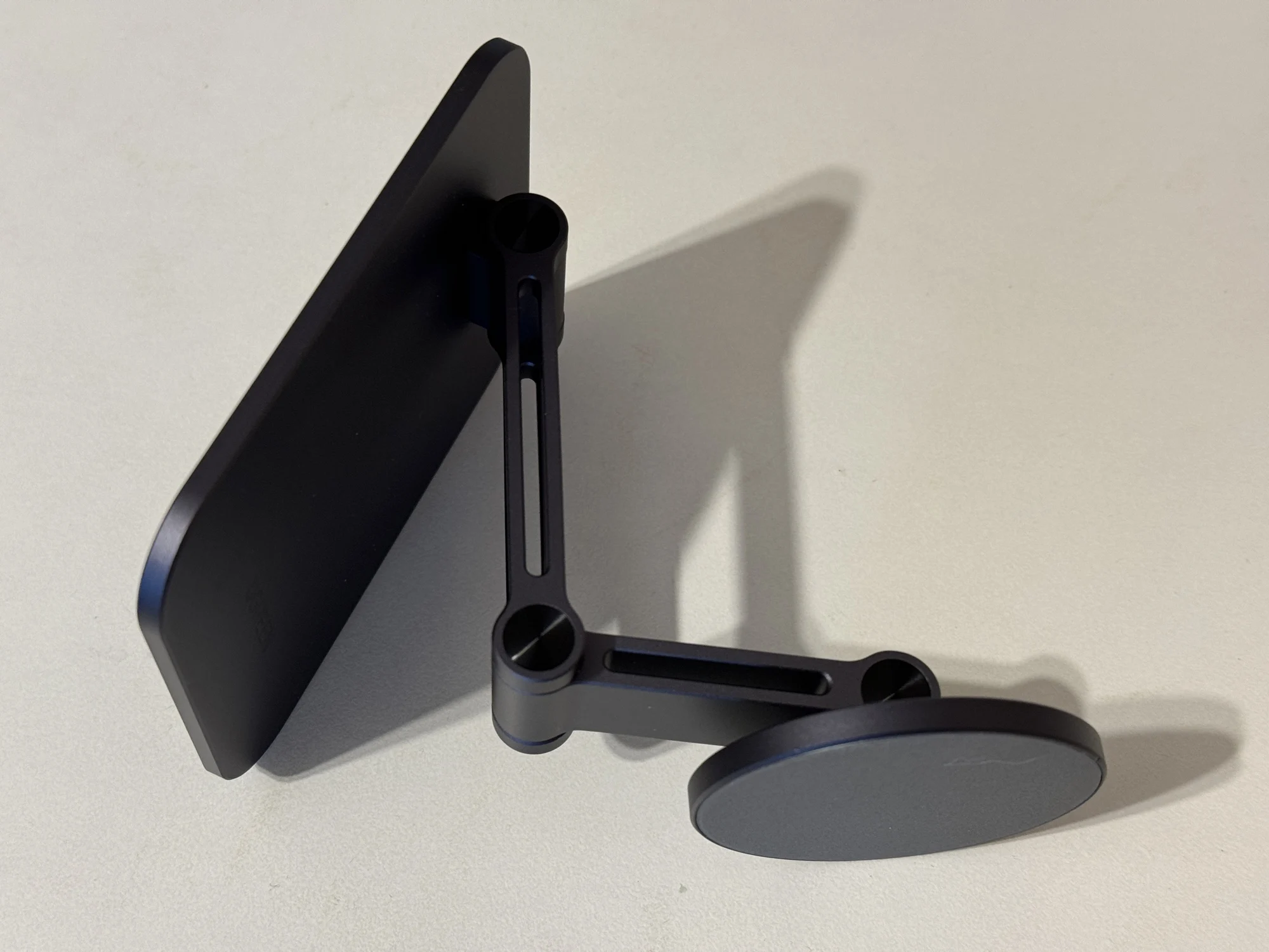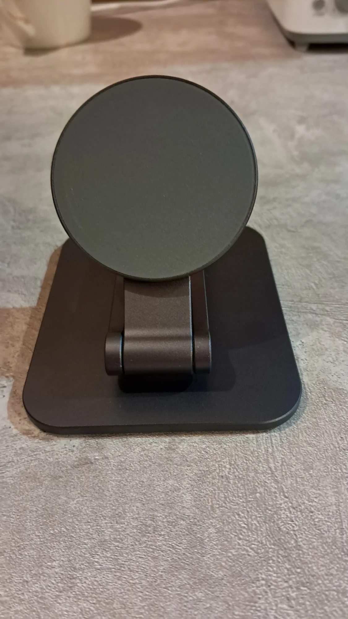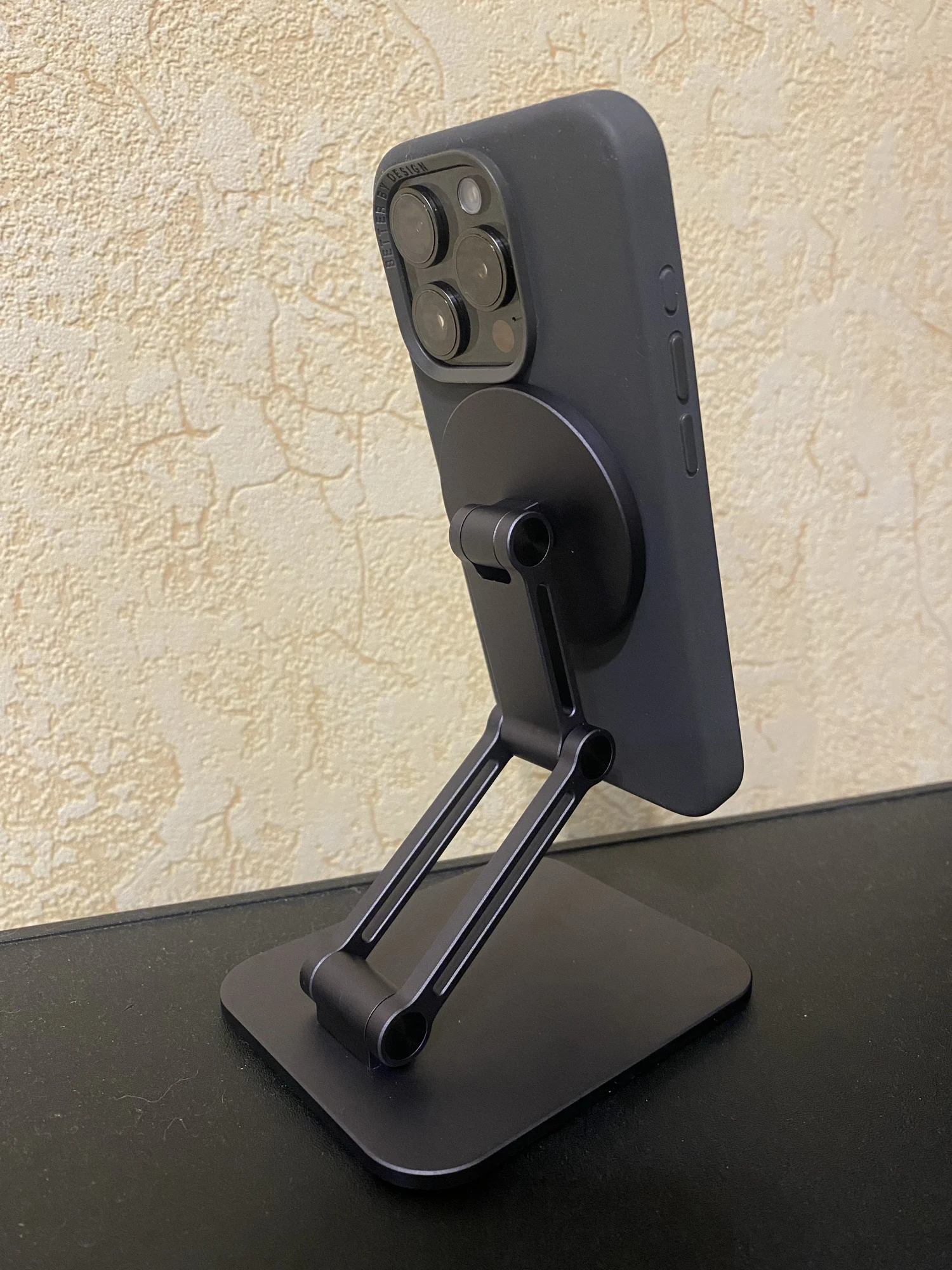 Стильный, качественный держатель. Жесткая фиксация как положения конструкции так и смартфона (использую чехол со встроенным MagSafe). Рекомендую.
