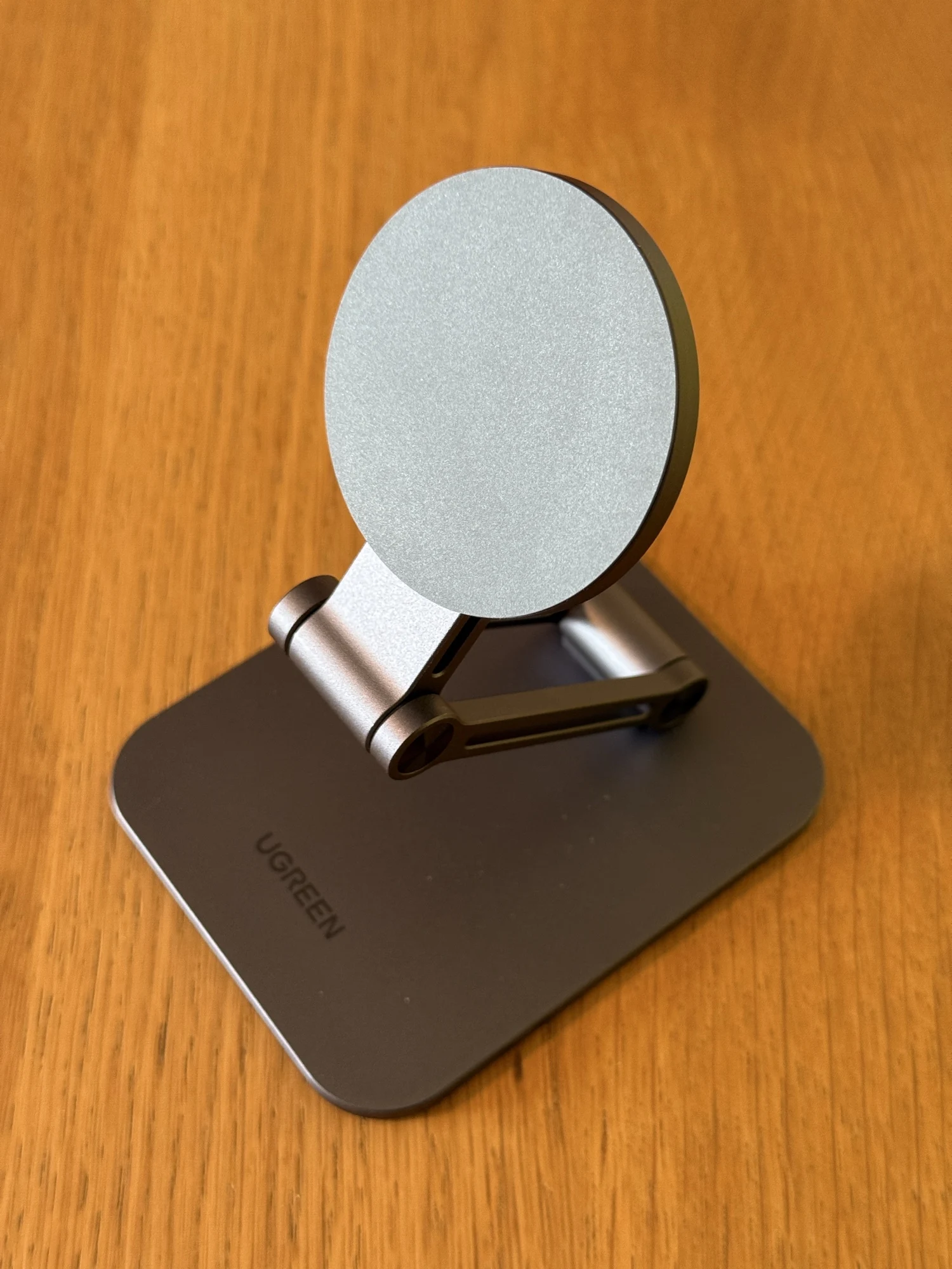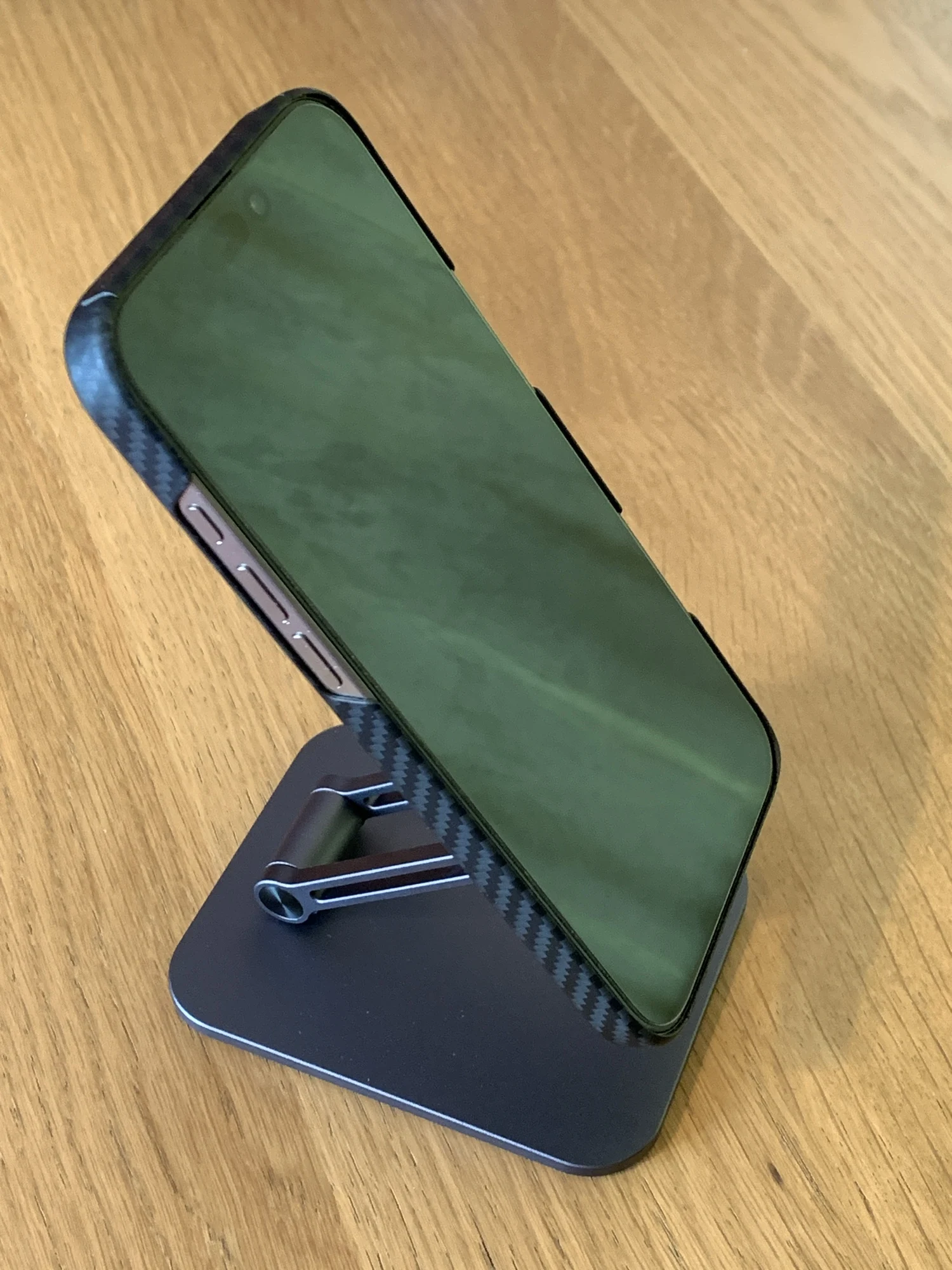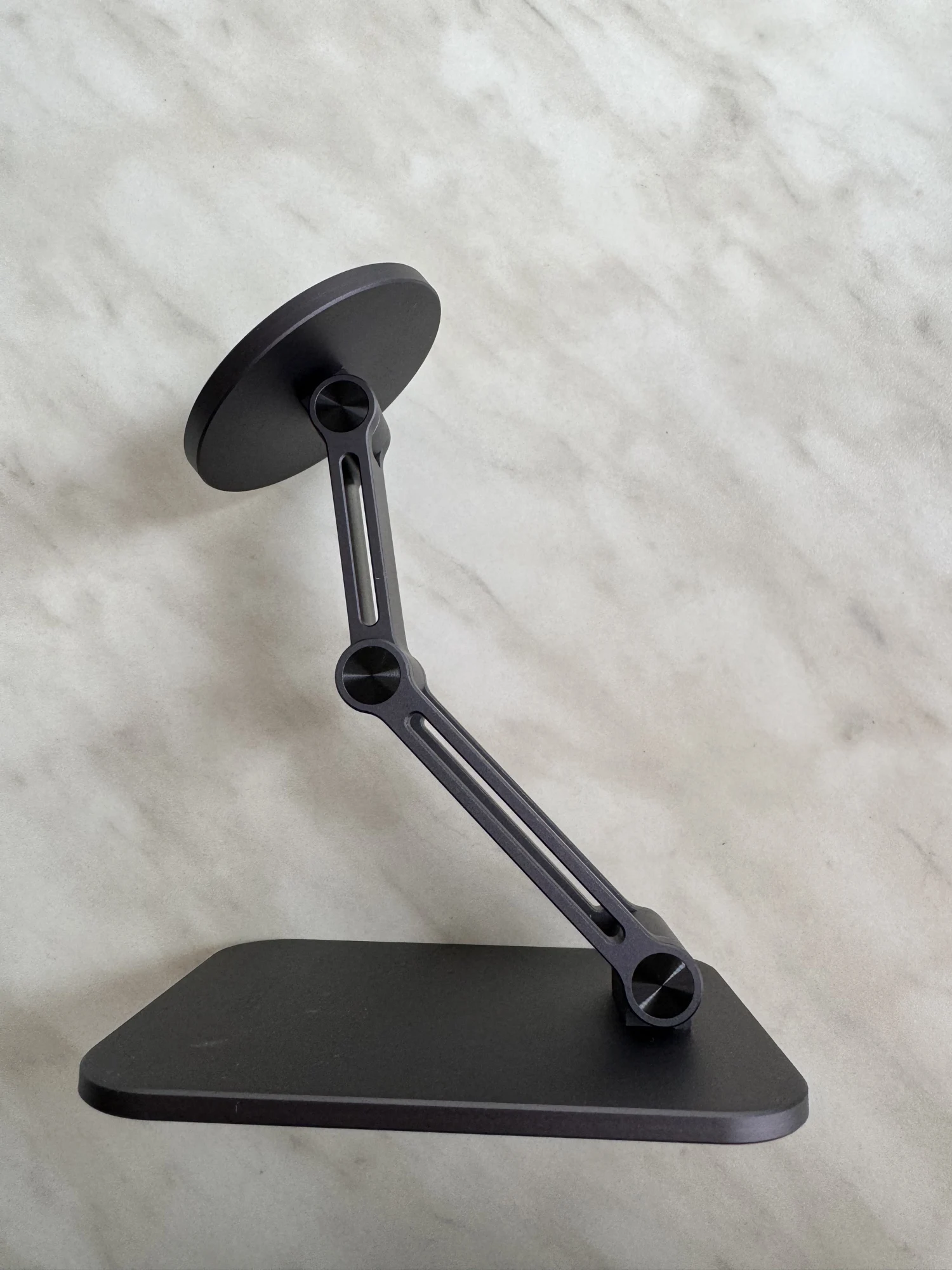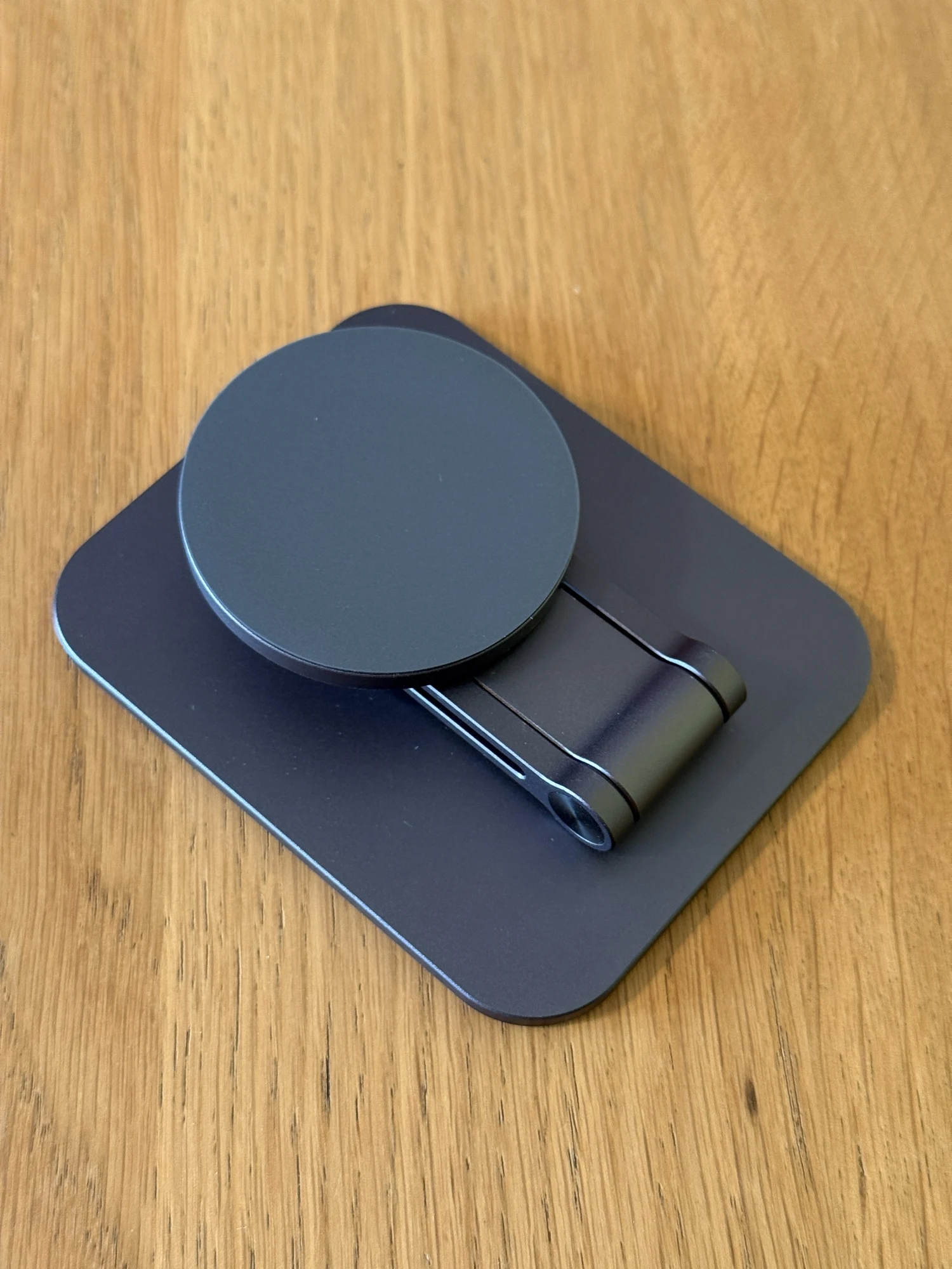 Стильный, качественный держатель. Жесткая фиксация как положения конструкции так и смартфона (использую чехол со встроенным MagSafe). Рекомендую.