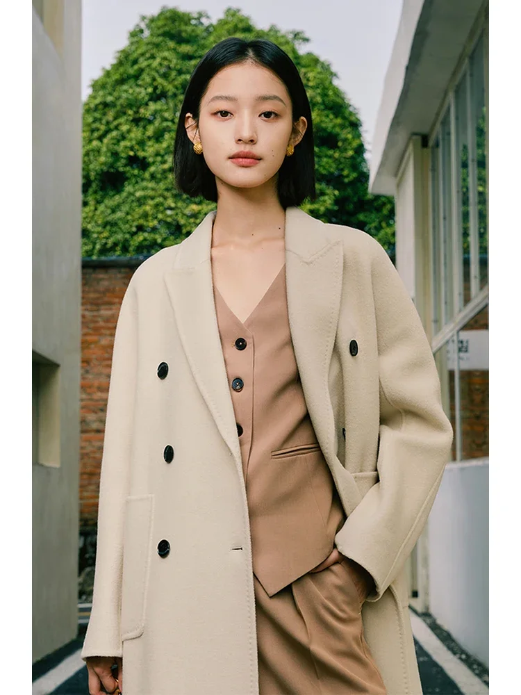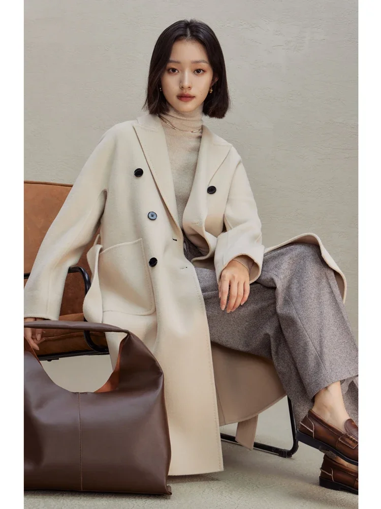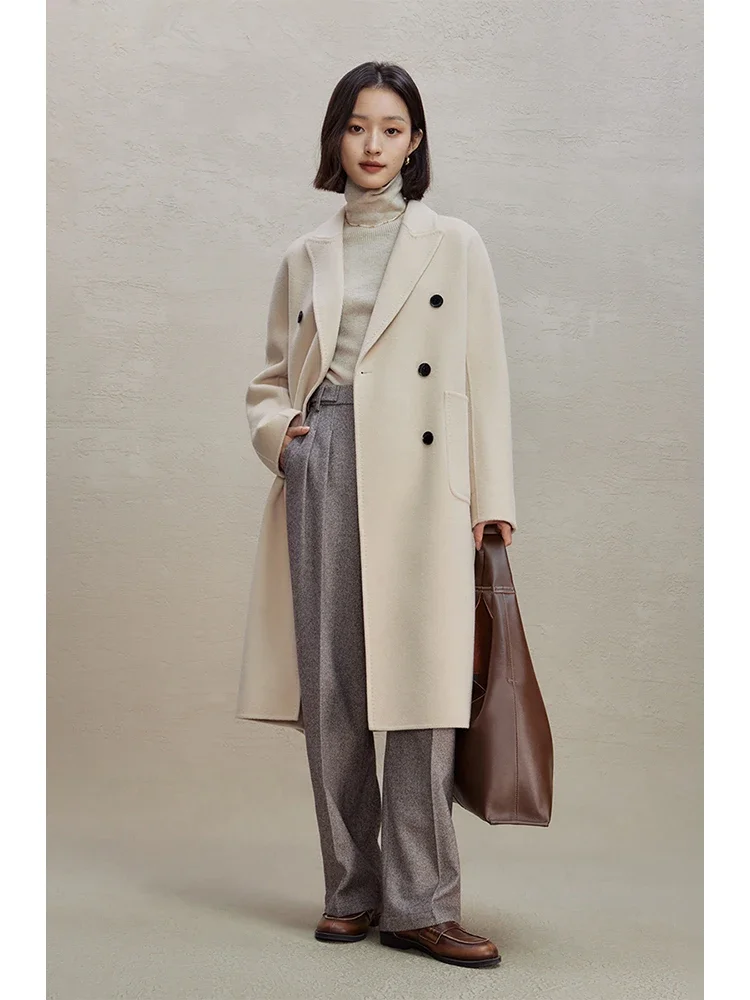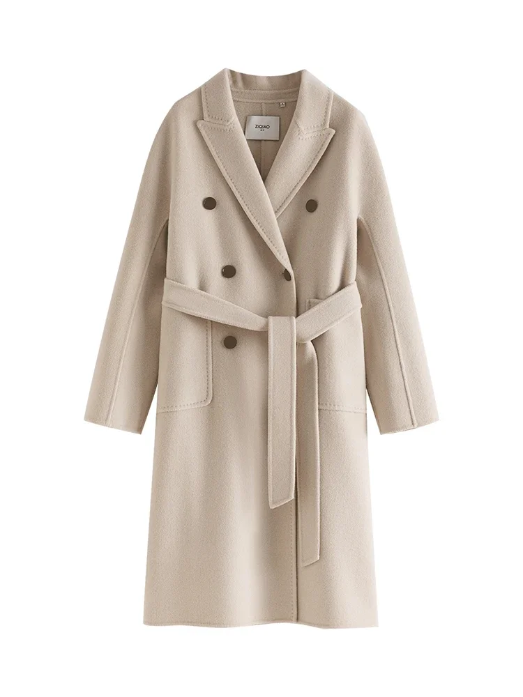 ZIQIAO High-end Cashmere Double-sided Woolen Coat for Women 2023 Winter...