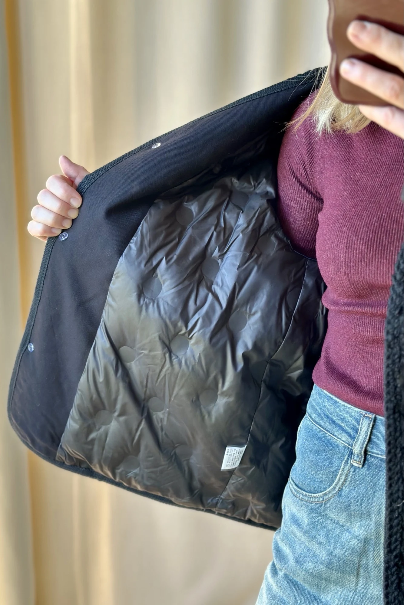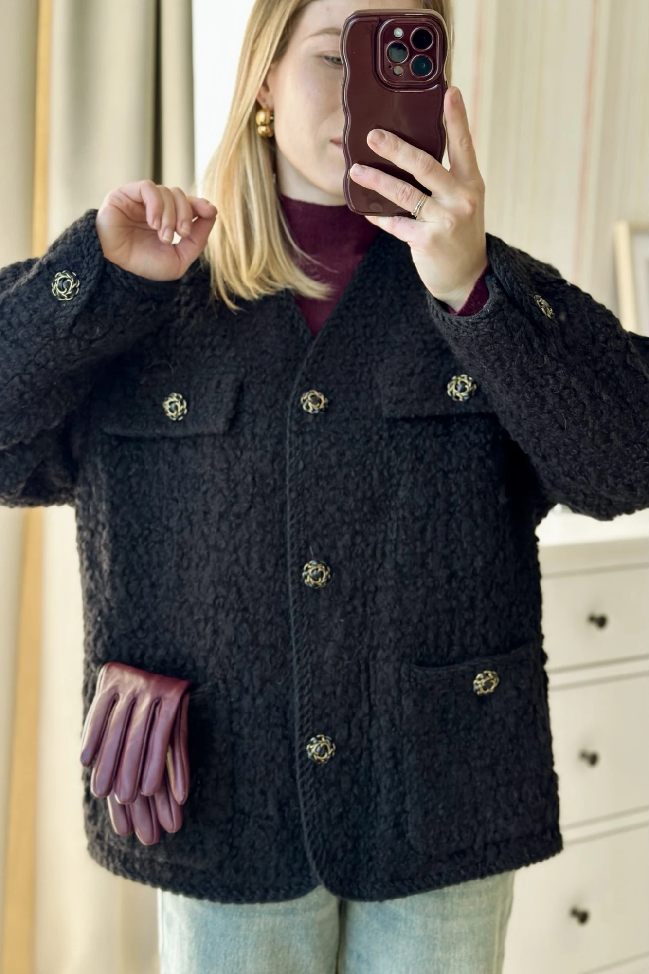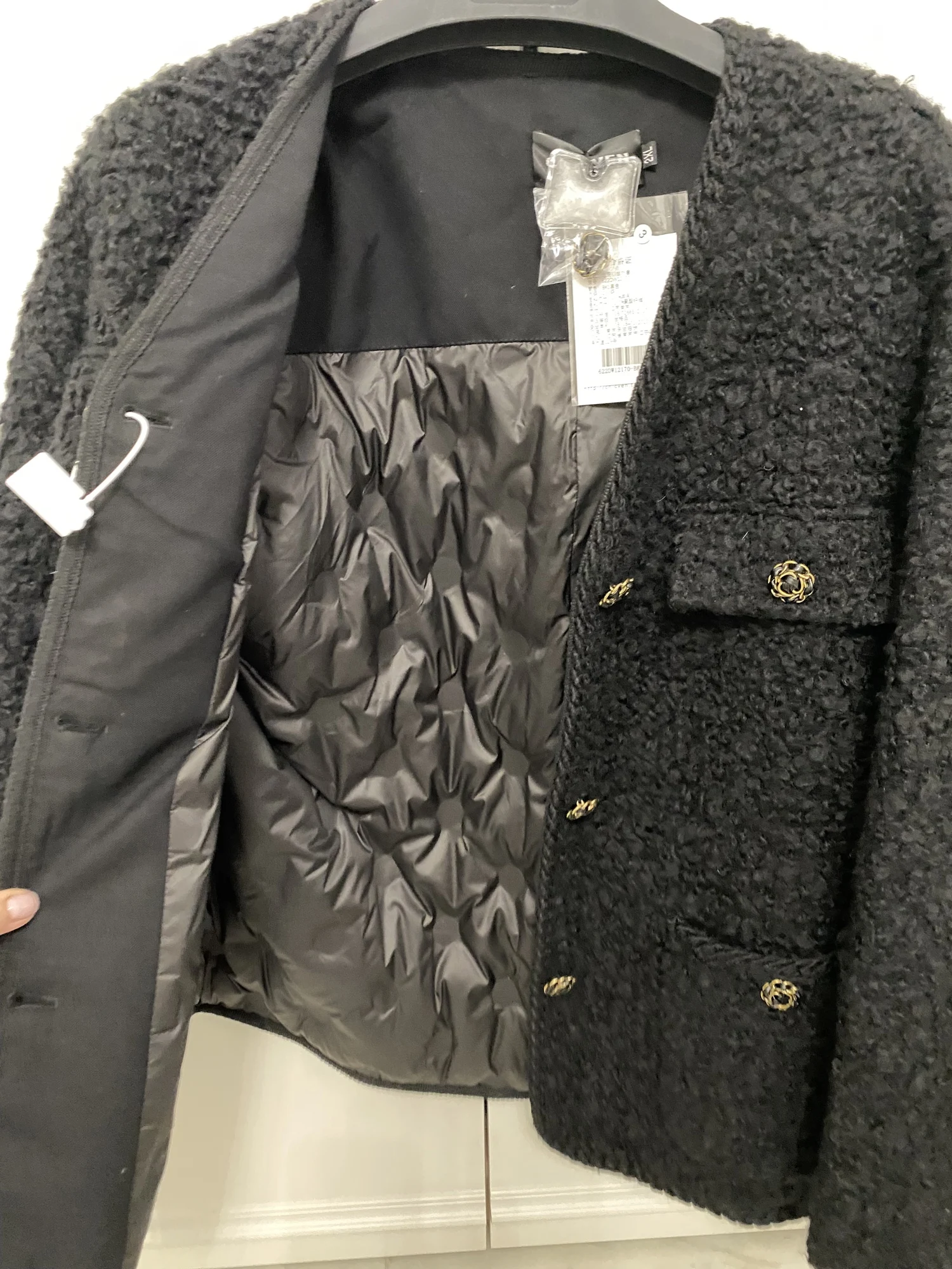 Пальто-жакет Безумно роскошная и стильная вещь. Очень красиво смотрятся контрастные края. Застегивается на 3 пуговицы, карманы так же ими декорированы. Подклад сделан из матовой атласной ткани. Внутри утеплитель на утином пуху. Состав: 100% шерсть. Материал плотный, пушистый. Вес ощущается на теле, но достаточно комфортно. Жакет действительно теплый, подойдет на прохладную погоду или как дополнительный слой под пуховик, дубленку или шубу. В комплекте дополнительная пуговица и образец пуха в воздушном мини-боксе. Как и всегда бренд радует безупречным качеством. Еще ни один товар меня не разочаровал. Все швы ровные, не было постороннего запаха. Само пальто было упаковано в фирменный противоударный пакет. На рост 158, параметры 92-64-88 выбрала размер М и ничуть не пожалела. Рукава отличной длины. Сам жакет не большой. Со свитером сел прекрасно. И я бы не стала брать меньше и не советую никому, особенно, кто примерно таких же параметров и роста. От всей души рекомендую этот жакет, выглядит намного дороже, чем стоит. Берите - не пожалеете, и заглядывайте ко мне на канал.