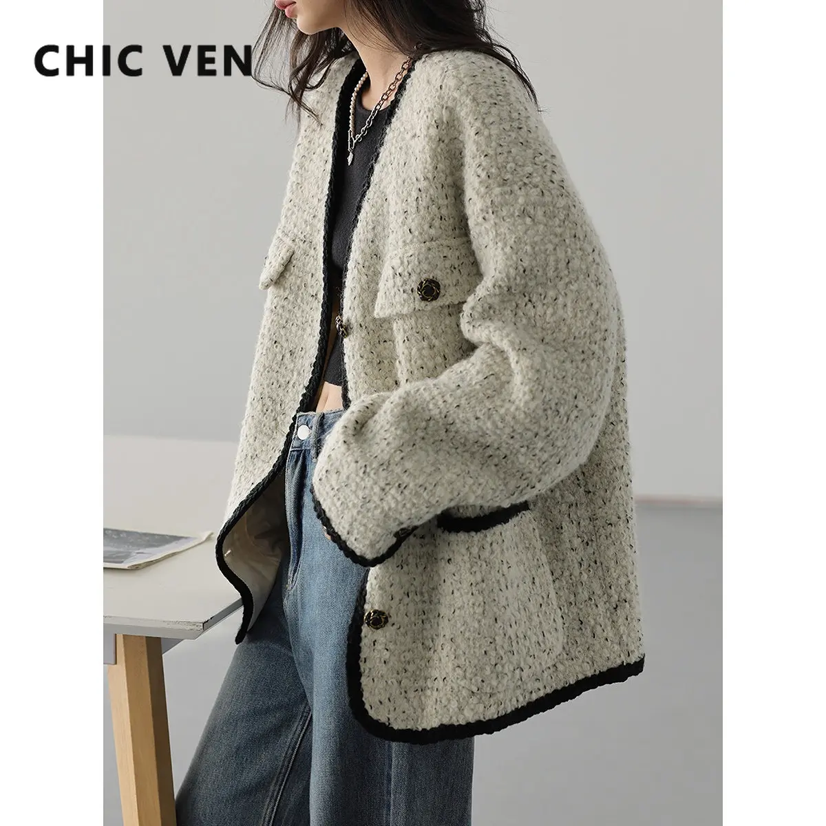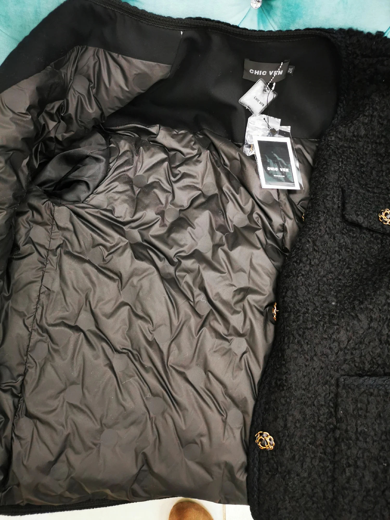 CHIC VEN Women's Woolen Coat Heavy Industry Down Jacket Vintage V-Neck Woman...