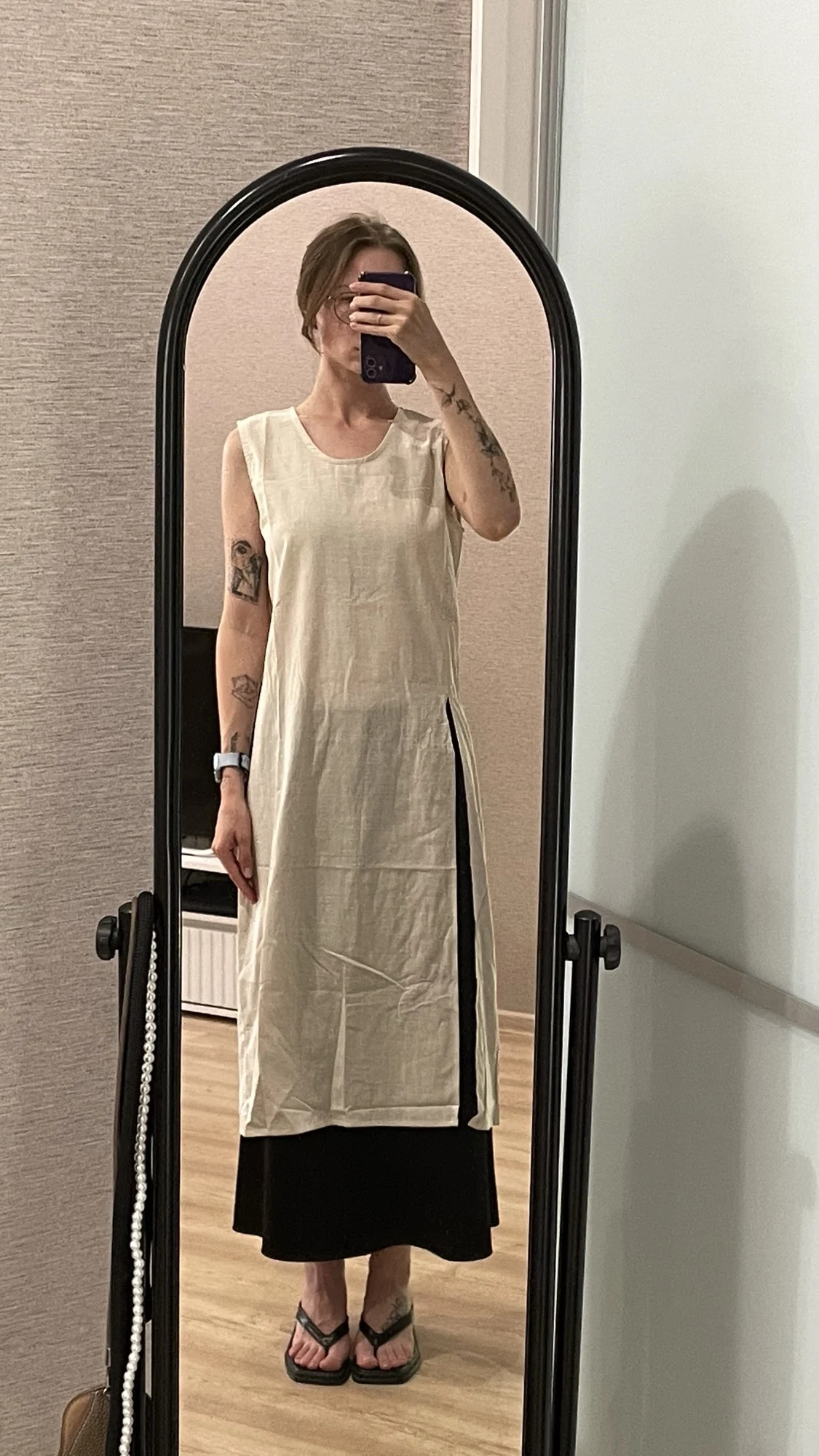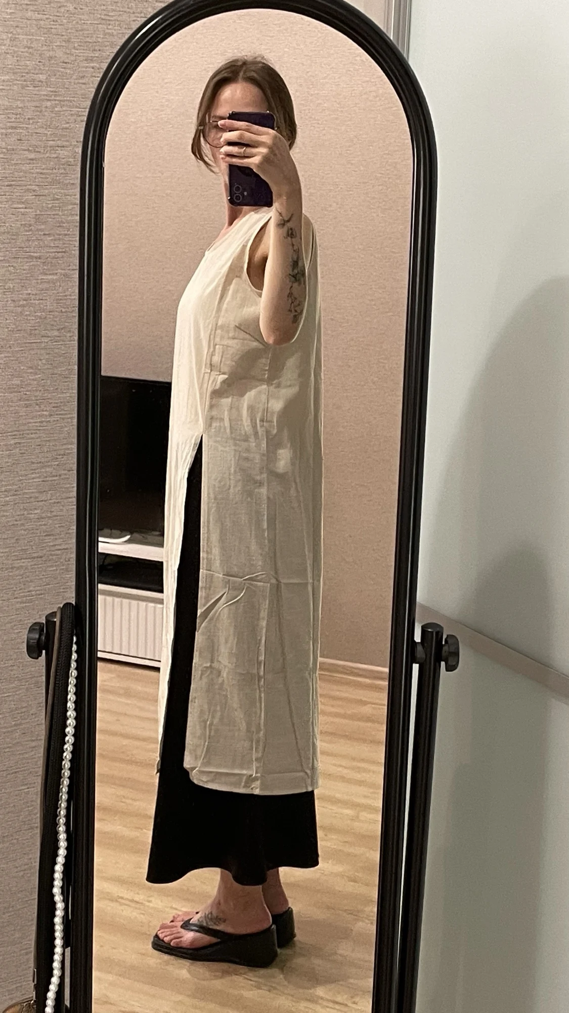 быстрая отправка - Спасибо, продавец! Красивый цвет - каштановый, глубокий. Понравился материал - средней плотности хлопок, для лета прост прекрасно. На рост 157 см . сильно ниже колена. разрез почти от паха, при ходьбе раскрывается. Считаю, что очень удачный фасон: с брюками, юбкой, любая комплектация. Можно вниз надеть футболку, если смущают голые руки. Но пройма не вырезана до живота! прост можно надеть футболку. Очень довольна свое покупкой. Теперь ещё сильнее верю в то, что лето будет! СПАСИБО!