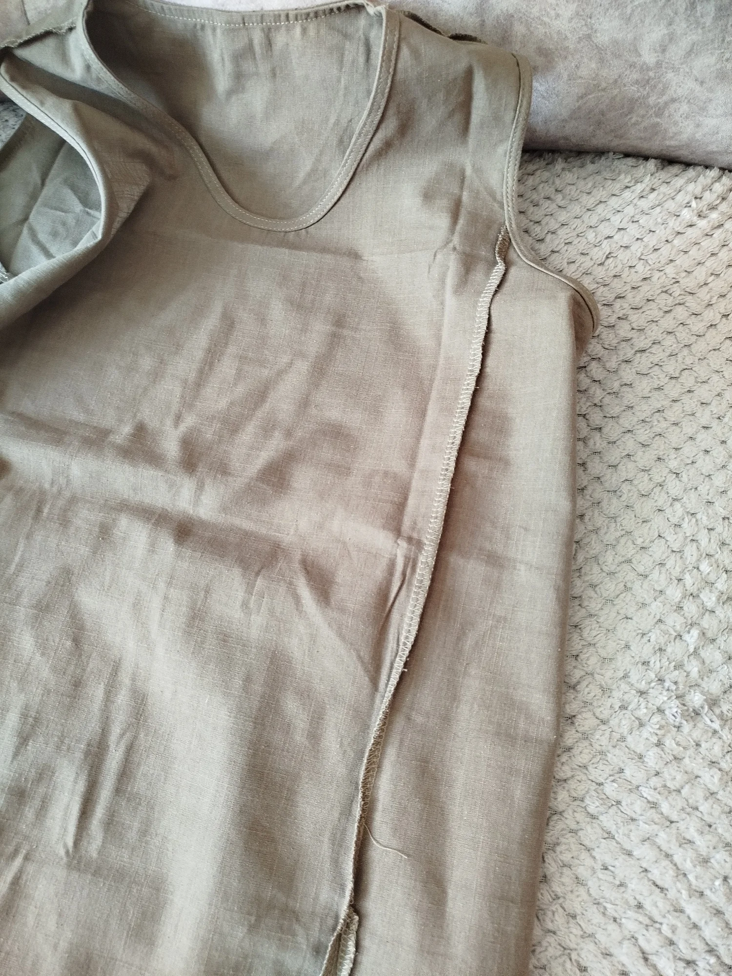 хорошая туника.. на размер 46,48...у меня 50 в груди плющет.. но надеюсь переделать.. цвет не темно коричневый, а каштан. Интересная штука ,рекомендую! швы хорошо оверлоченные, на фото не смотрите цвет не передал.