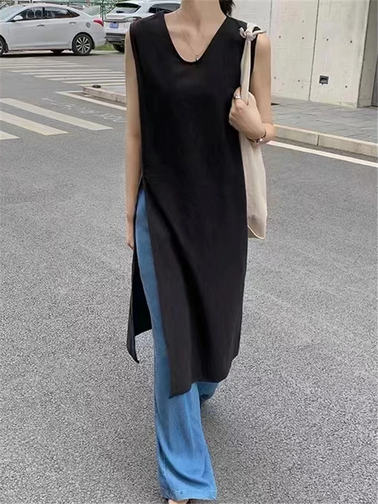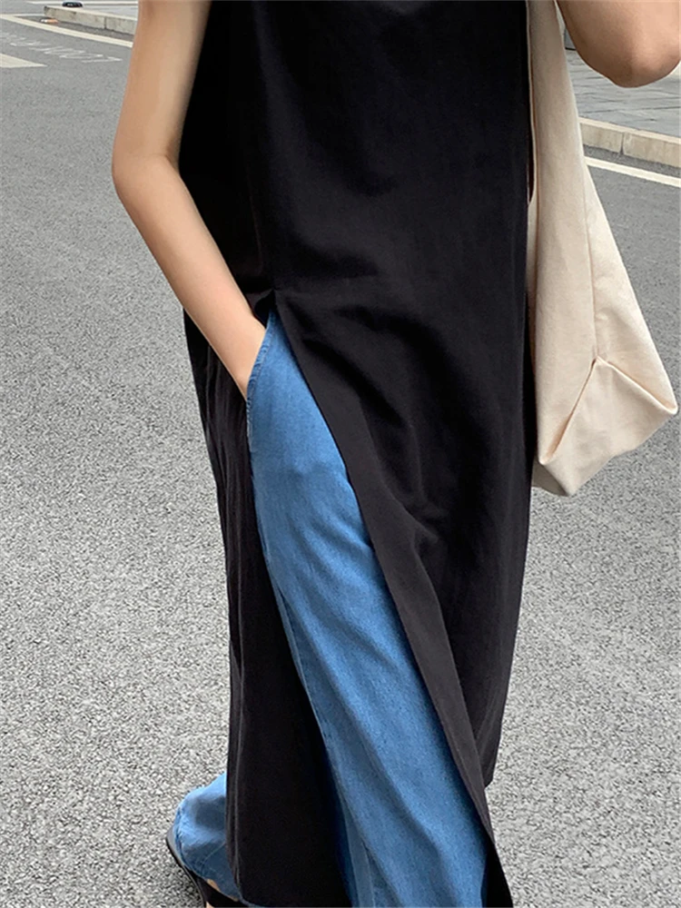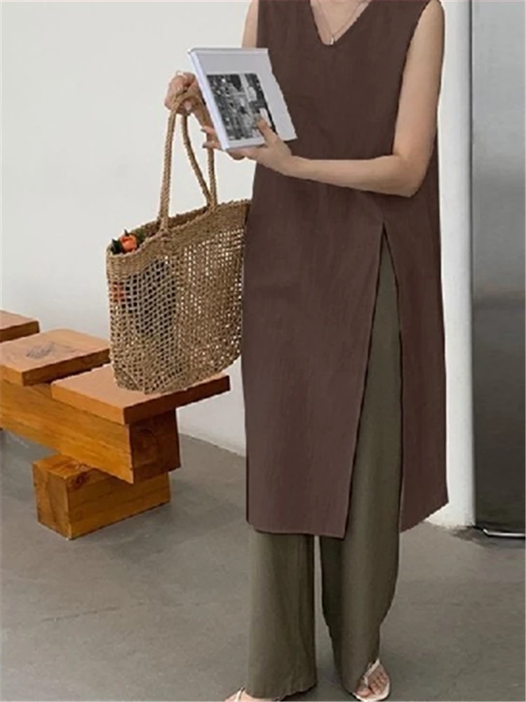 REALEFT Summer Vintage Cotton Linen Women's Dresses Sleeveless High Waist New...