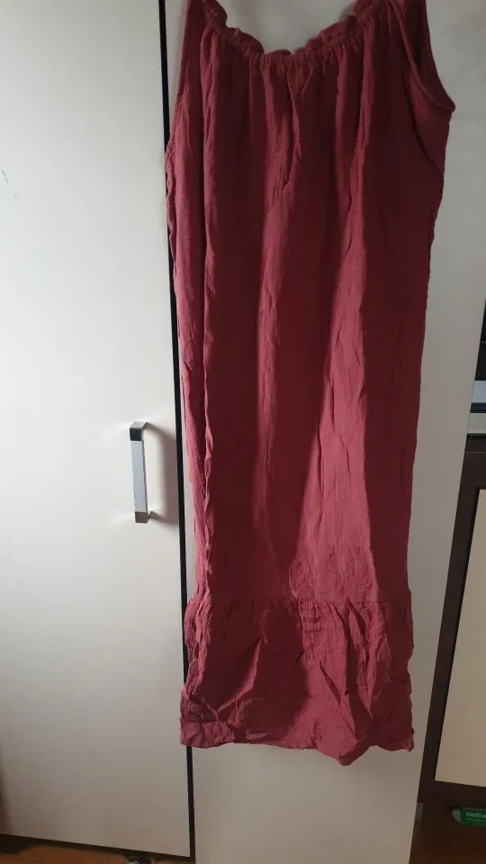 Сарафан сшит аккуратно, ткань очень приятная к телу, на жару то, что нужно. На ОГ 96 сильно большой. Думаю, что подойдет на 56-58 размеры.Продавца рекомендую.